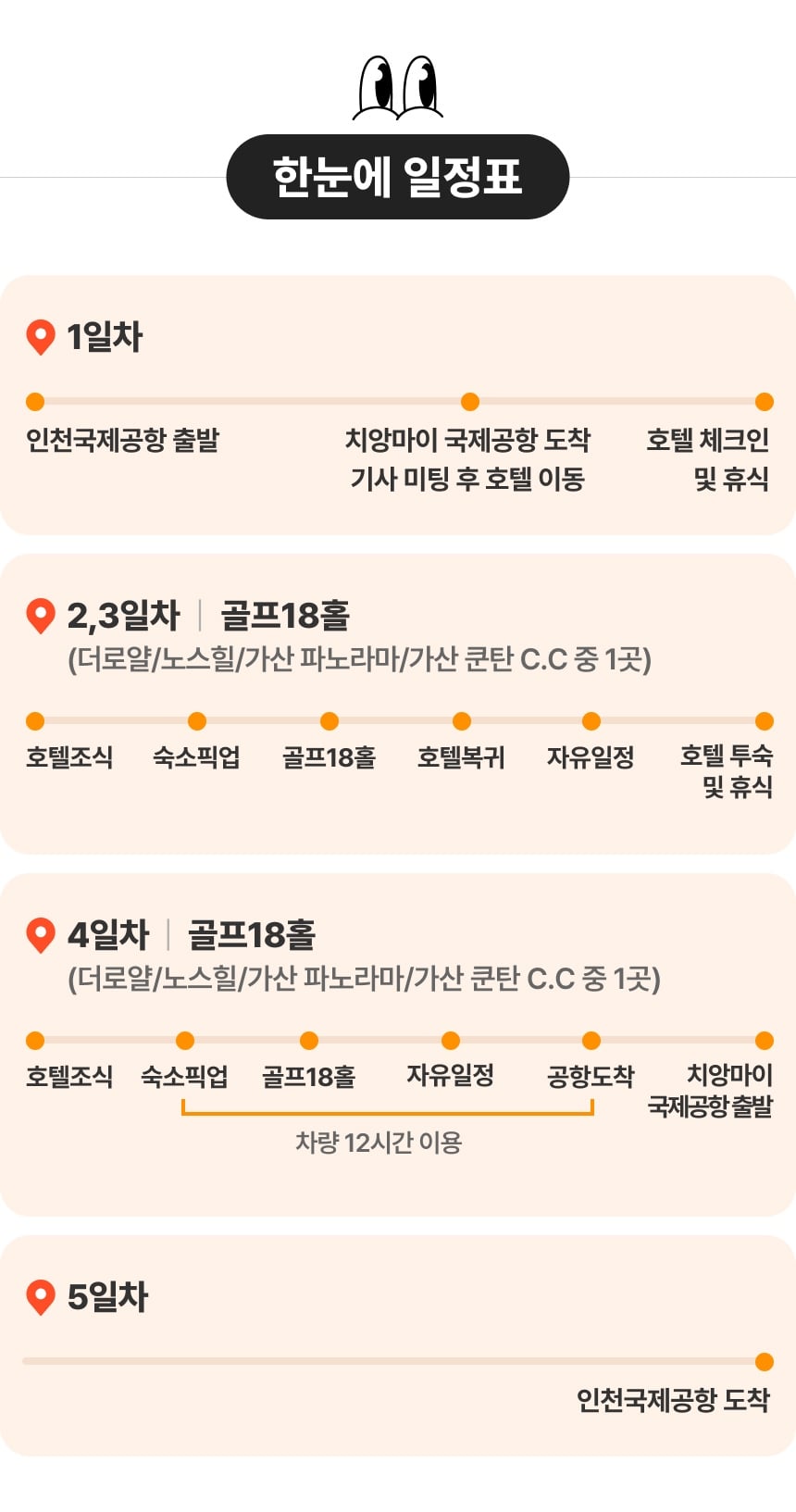 몽키스윙 상품은 미팅샌딩비, 캐디피, 카트피 전부 포함! 현지 추가 결제 금액이 없습니다.