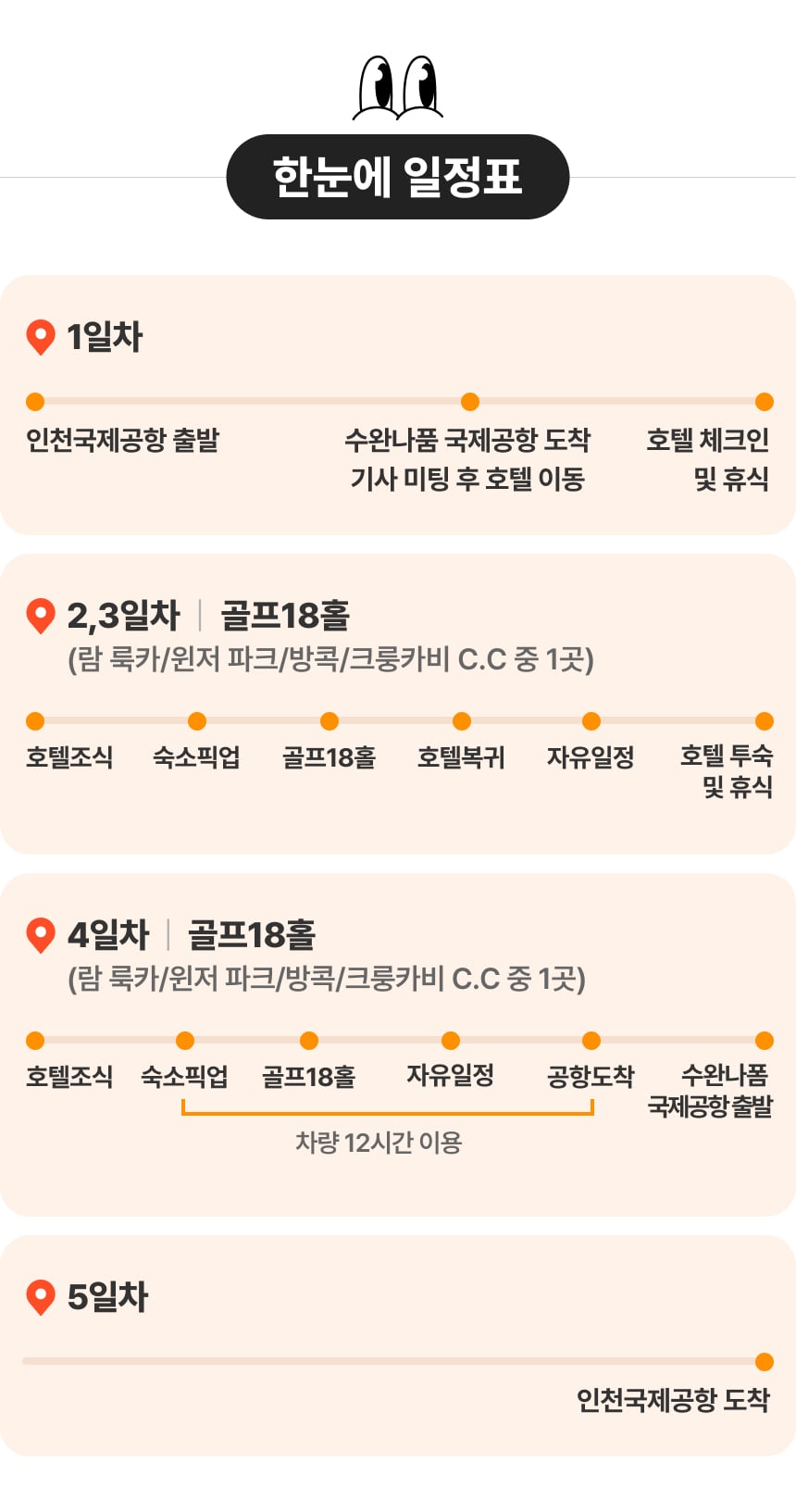 - 태국 공휴일 라운드 시 주말 요금이 적용되어, 1인 2만원 추가 금액 발생됩니다.