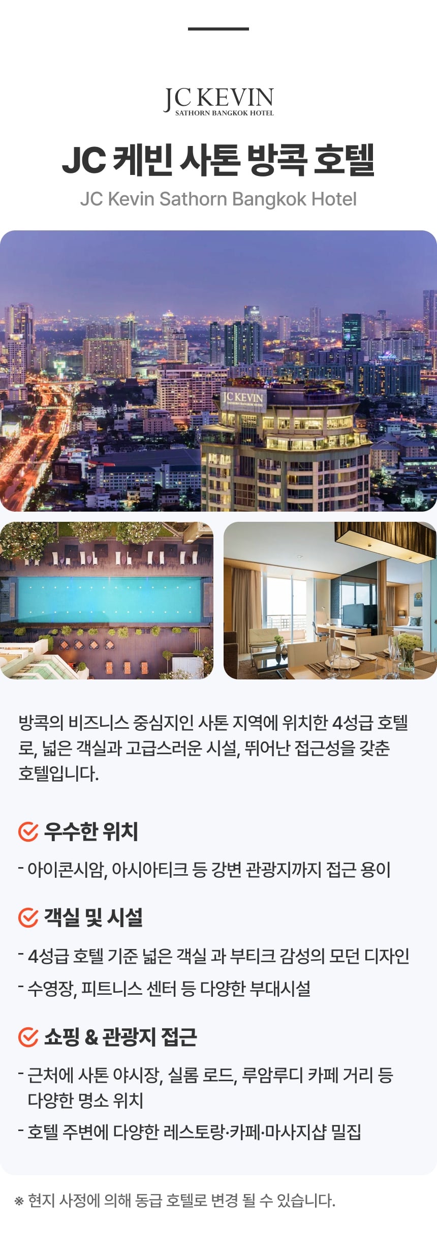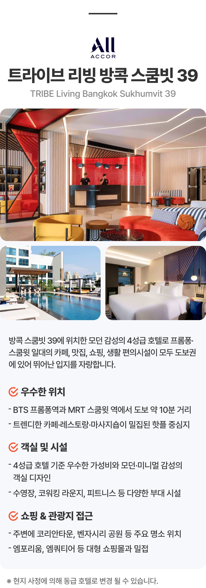 - 2025-12-25~2026-01-03, 2026-02-14~2026-02-21 기간 투숙 시 써차지 박당 1인 20,000원 추가 - 미팅/픽업장소 안내