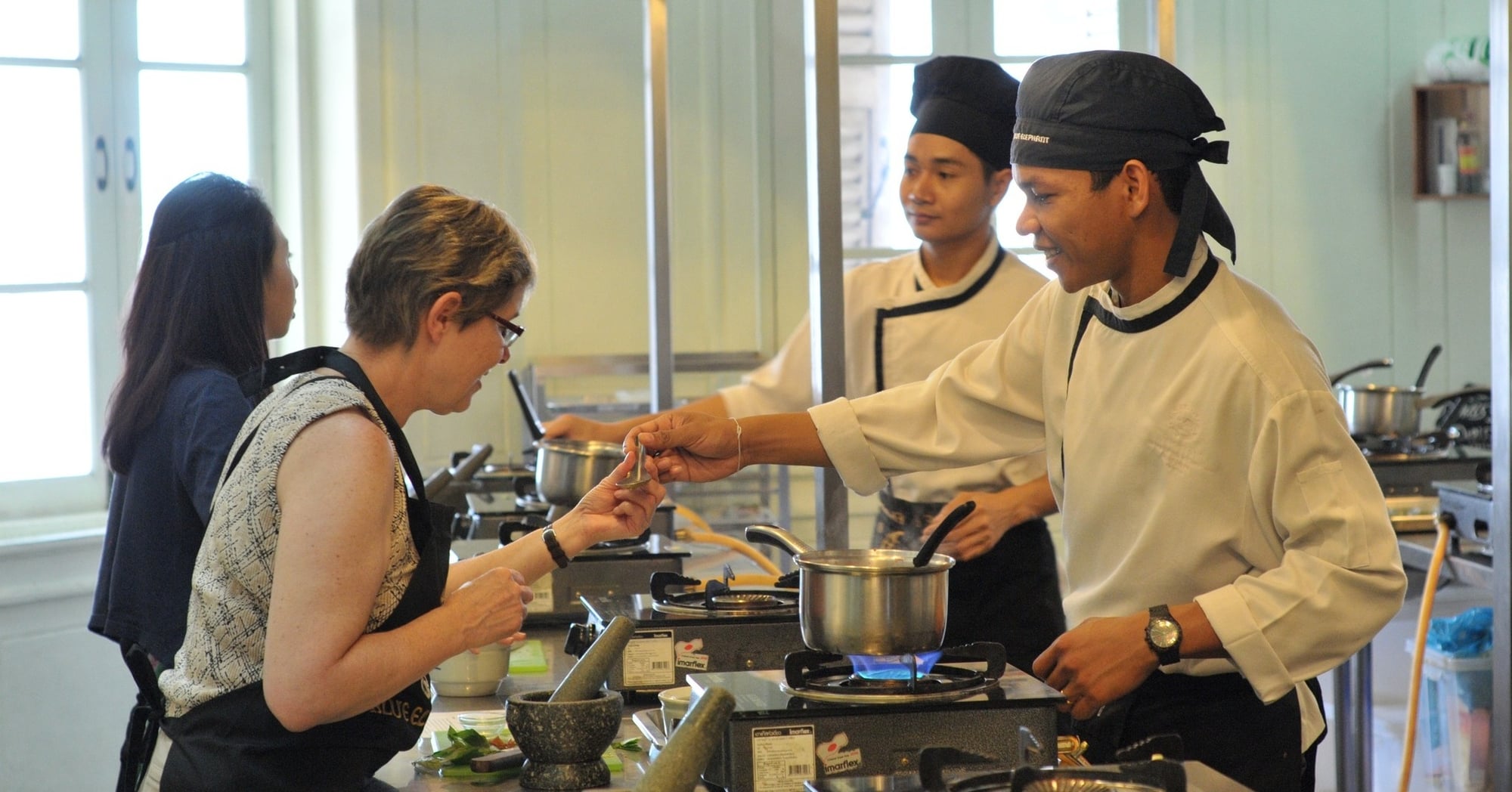 방콕 최고의 쿠킹 클래스 중 하나인 블루 엘리펀트 쿠킹 스쿨 전문 셰프에게 배우는 태국 요리의 비법을 경험해 보세요.🍳