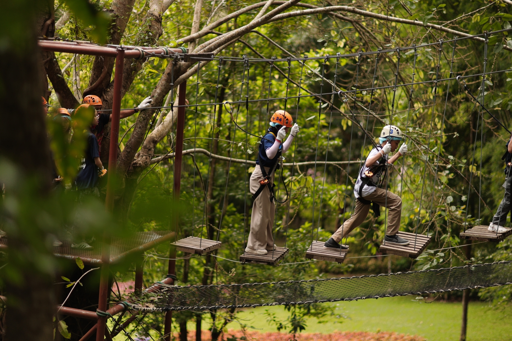- 6 짚라인 (Ziplines) , 1 코인 브릿지 (Coins bridge) , 1 행잉 스틱 (Hanging sticks) , 1 스위밍 팀버 (Swinging timber) , 1 크로스 우든 브릿지 (Cross wooden bridge) , 1 넷 라이더(Net rider) , 1 파이프 드림 (Pipe dream) , 1 에어로 스킹 (Aero skiing) , 1 라후 래더 (LAHU Ladder) , 1 로그 행잉 (Log hanging) , 1 자이언트 뱀부 (Giant bamboo) , 1 워치밴드 (Watchband) , 1 팀버 발란스 (Timber balance) , 1 게코 월 (Gecko wall) , 1 스파이더 웹 (Spider web) , 1 타잔 워크 (Tarzan walk) , 1 애어리얼 터널 (Aerial tunnel) ,1 지그재그 스틱 (Zigzag sticks) 1 체인 스텝 (Chain steps) + 리턴 기차 티켓