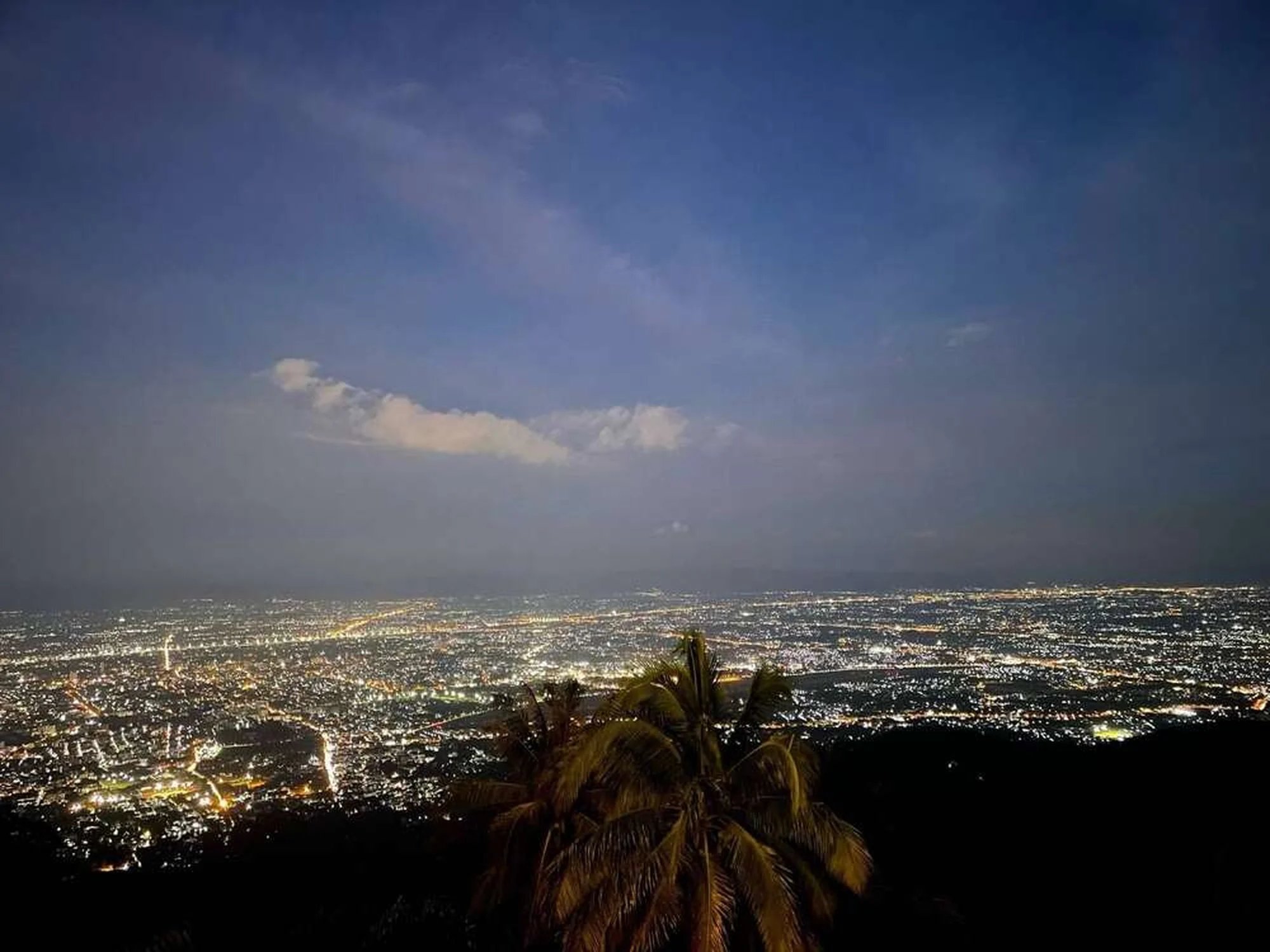 해 질 무렵, 조명이 켜진 도이수텝 사원의 환상적인 야경