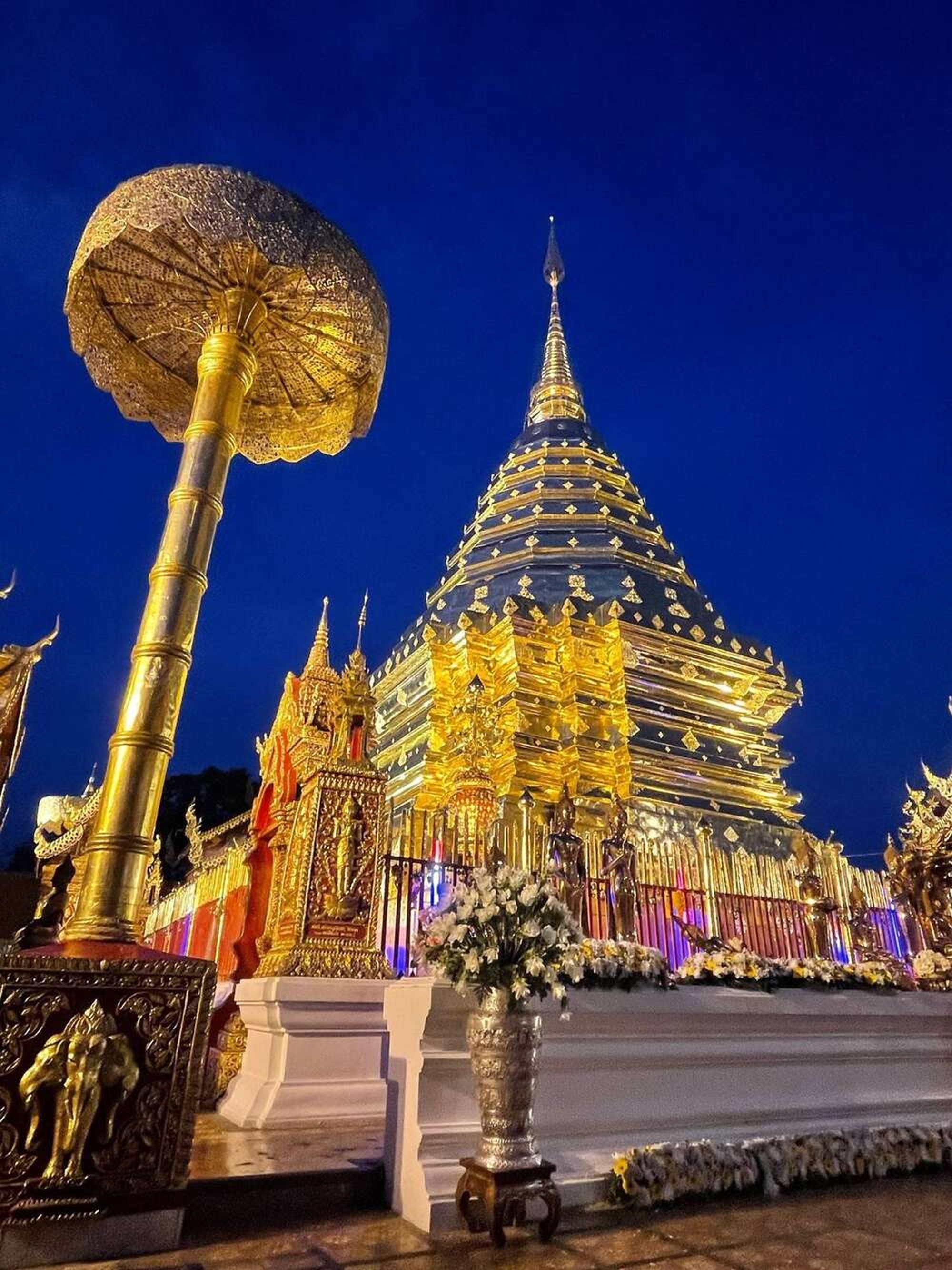 투어의 하이라이트는 단연 야간 도이수텝 사원!! 치앙마이 시내를 내려다보는 황금빛 야경은 여행의 마지막을 잊지 못할 순간으로 만들어줍니다.