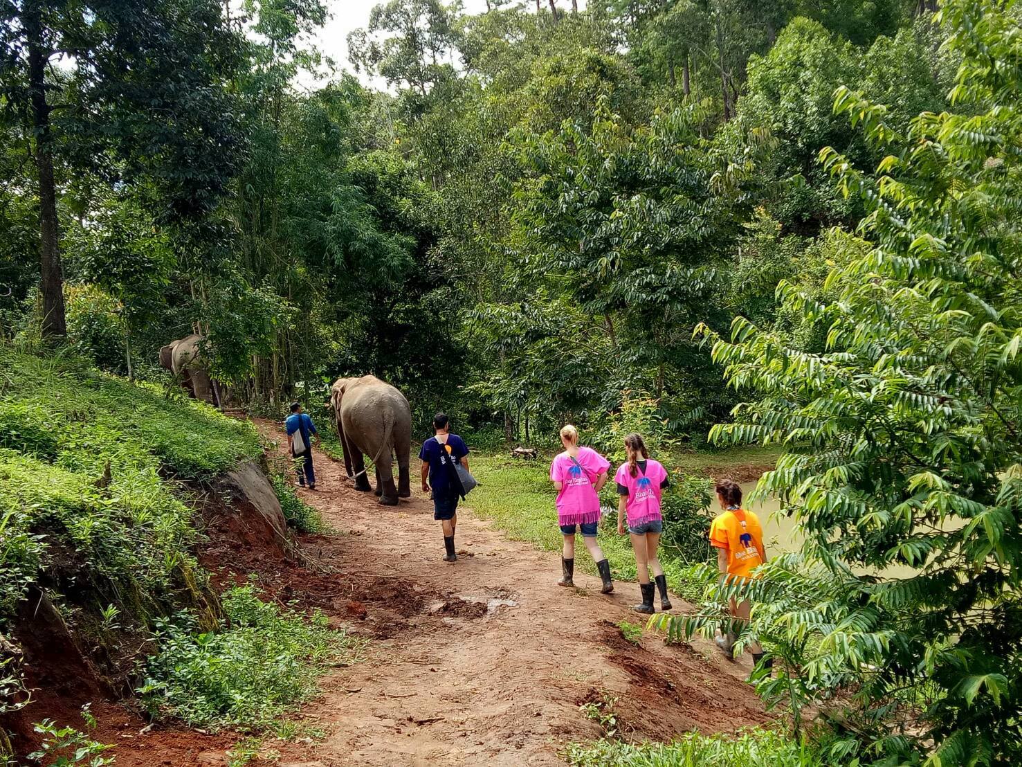 -코끼리들의 즐거운 식사 시간을 지켜본 후 작별 인사 (맑은 날에는 태국 최고봉 도이 인타논 산 정상이 보일 수 있습니다.)