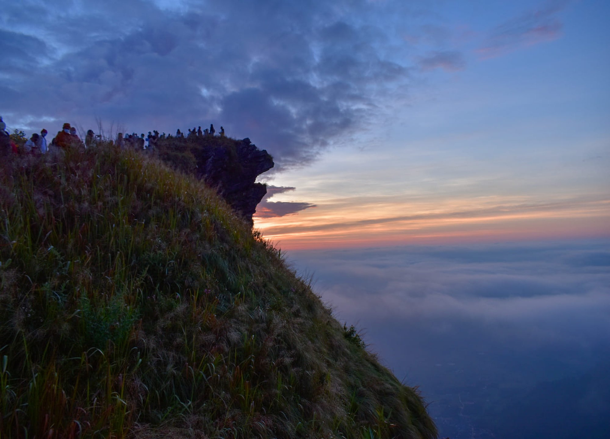 - 한적하고 고요한 자연 속에서 온전히 풍경을 즐길 수 있어요. 좁고 뾰족하게 솟은 능선 위에 서면 360도 파노라마로 펼쳐지는 라오스 국경과 안개 바다를 감상할 수 있어요. 마치 하늘 위를 걷는 듯한 아찔함이 매력적인 산이에요.