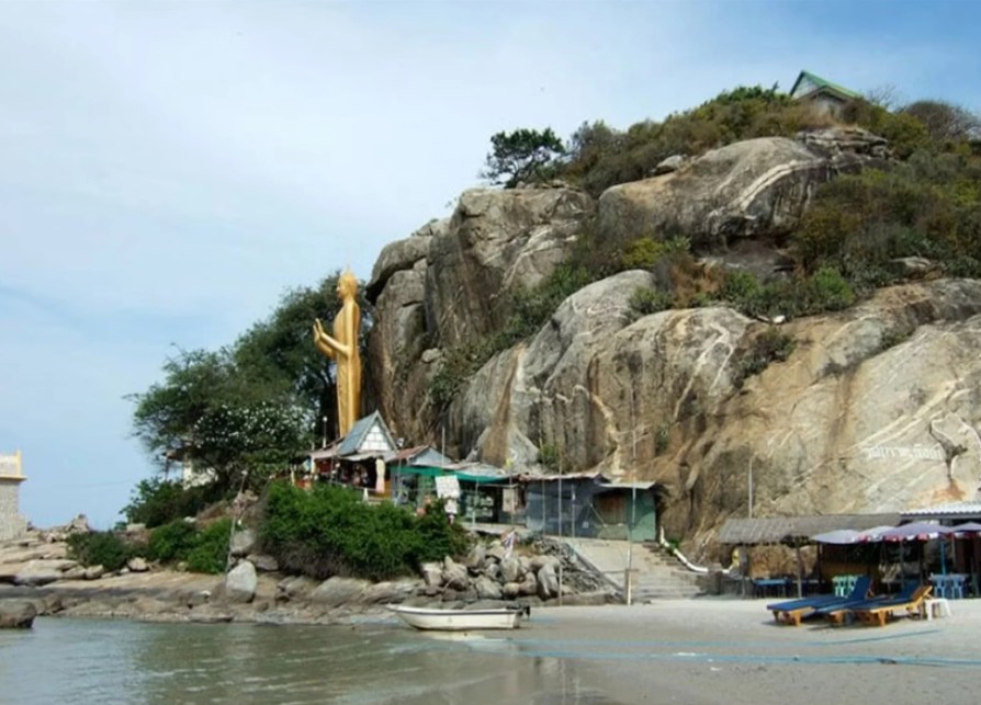 바다를 내려다보는 20m 황금 부처상과 왓 카오 랏 사원, 탁 트인 뷰포인트에서 후아힌의 절경을 감상해 보세요.