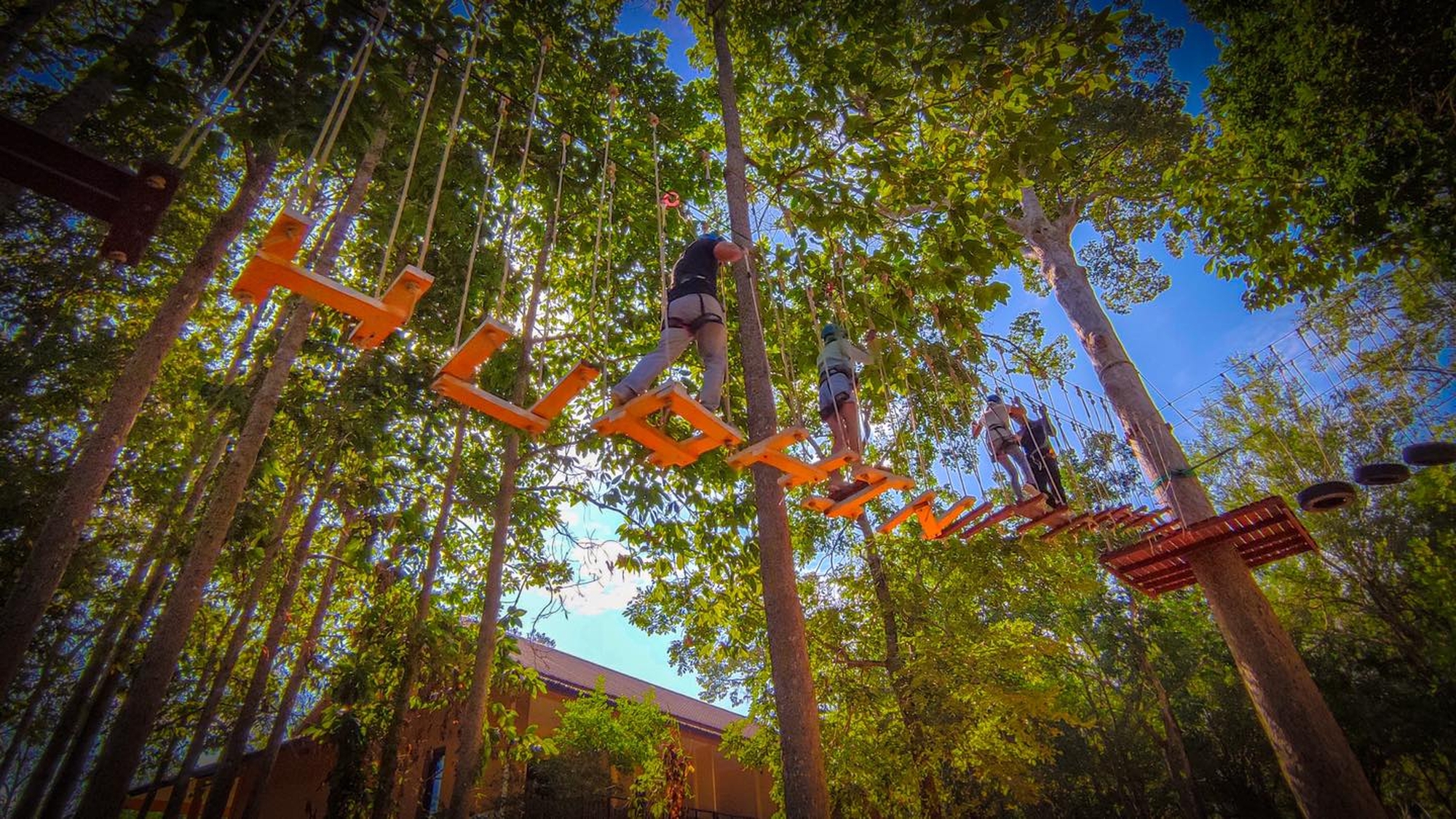풀코스는 나무에서 나무로, 플랫폼에서 플랫폼으로 짚라인, 타잔 스윙, 플라잉 스케이트보드 등 40개의 챌린지로 구성되어 있으며 약 2시간 정도 소요됩니다.