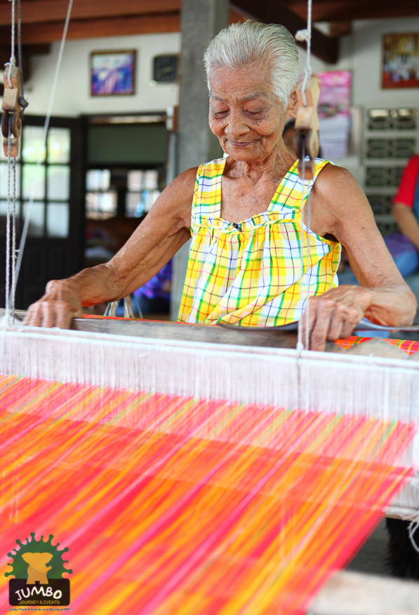전통 직조 방식으로 천을 만드는 과정 관람