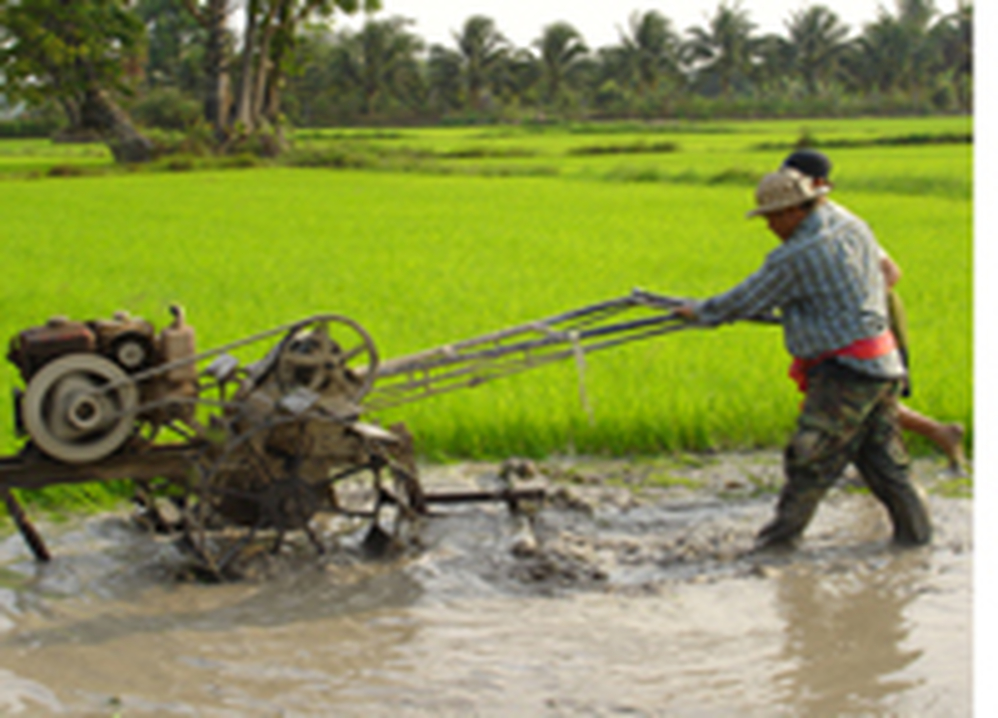 푸른 논과 전통 가옥이 어우러진 평화로운 마을 풍경 (자전거 또는 로컬 트럭으로 이동)