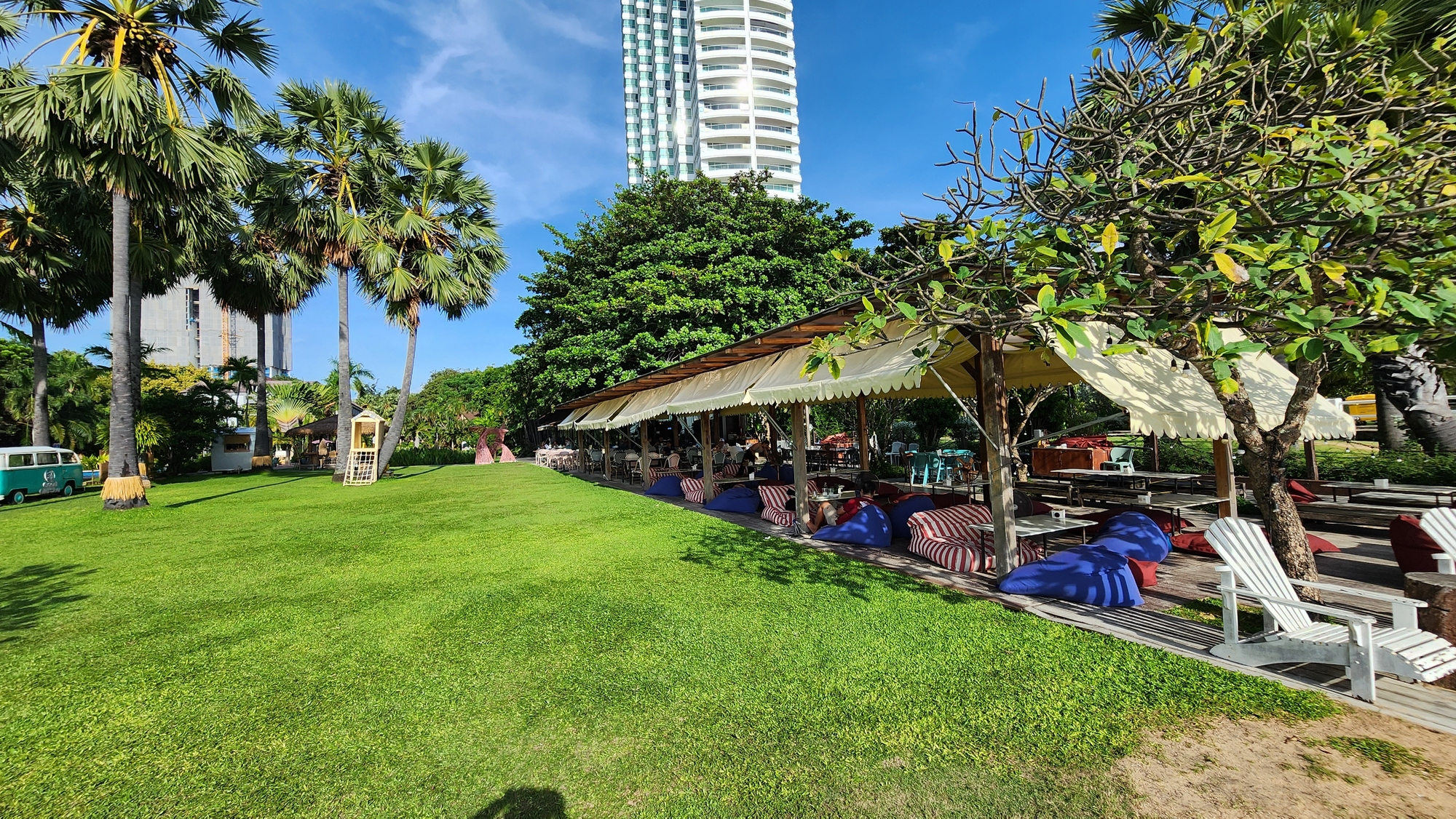 해변가 빈백에 누워 붉게 물드는 파타야 노을을 마주하세요.