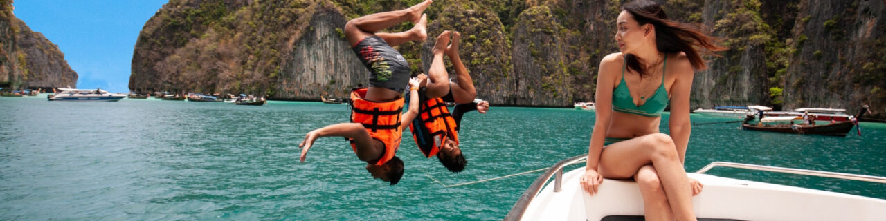 스피드 보트를 타고 피피섬(Phi Phi Islands)과 뱀부섬 (Bamboo Island)으로 떠나요.