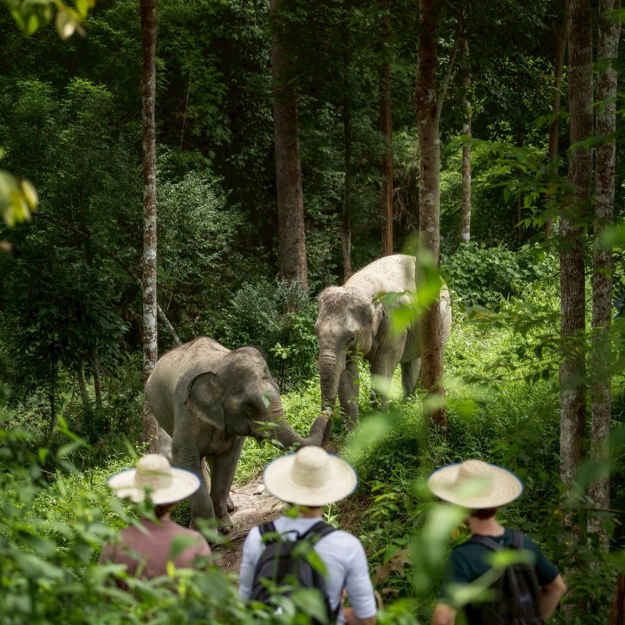 푸켓 인근의 평화로운 숲에서 자유롭게 살아가는 코끼리들을 만나보세요.