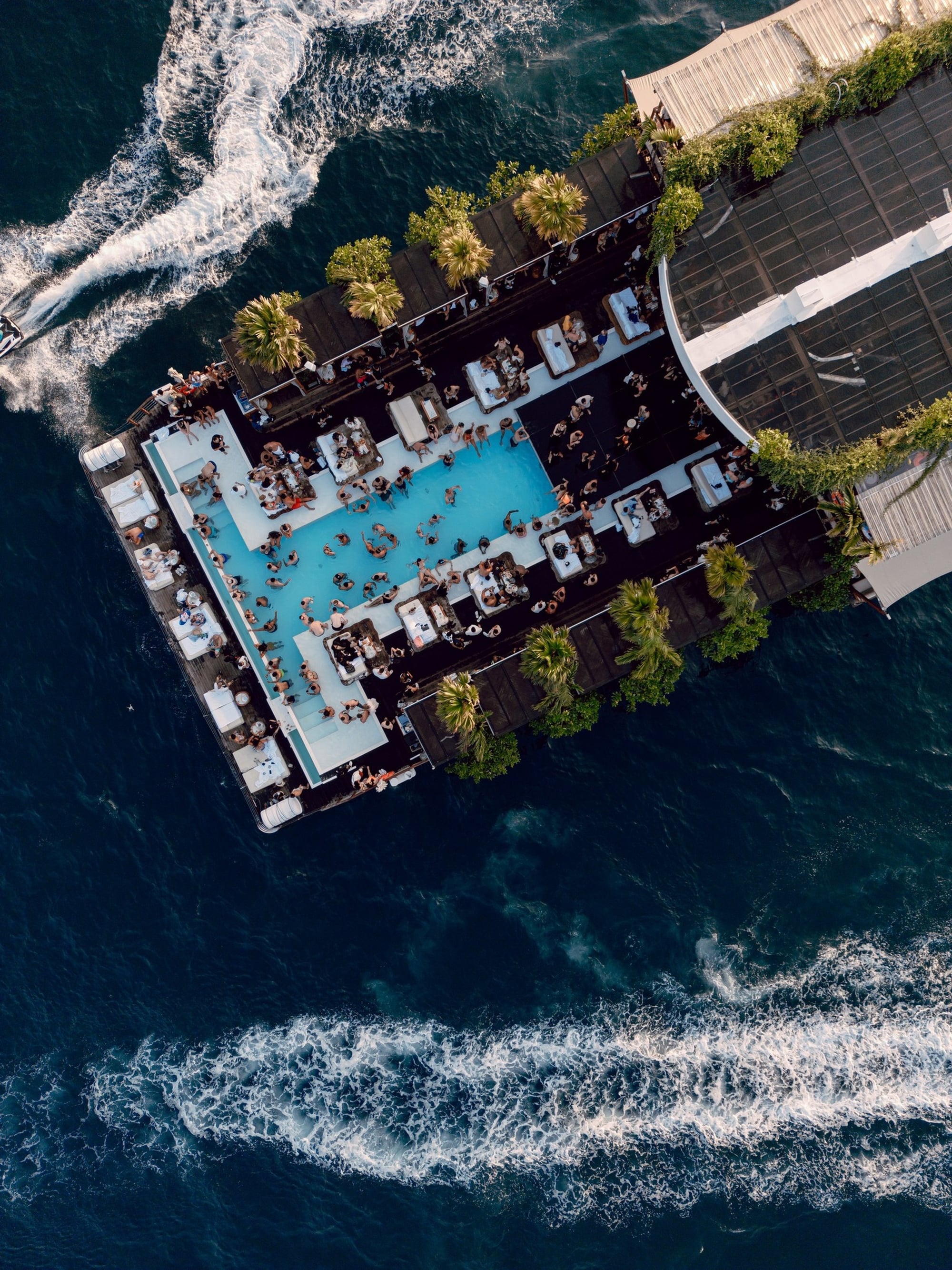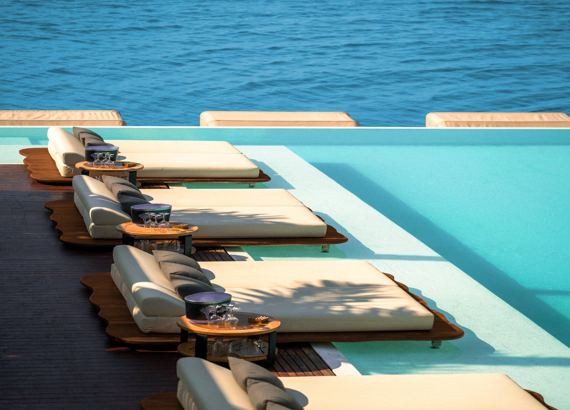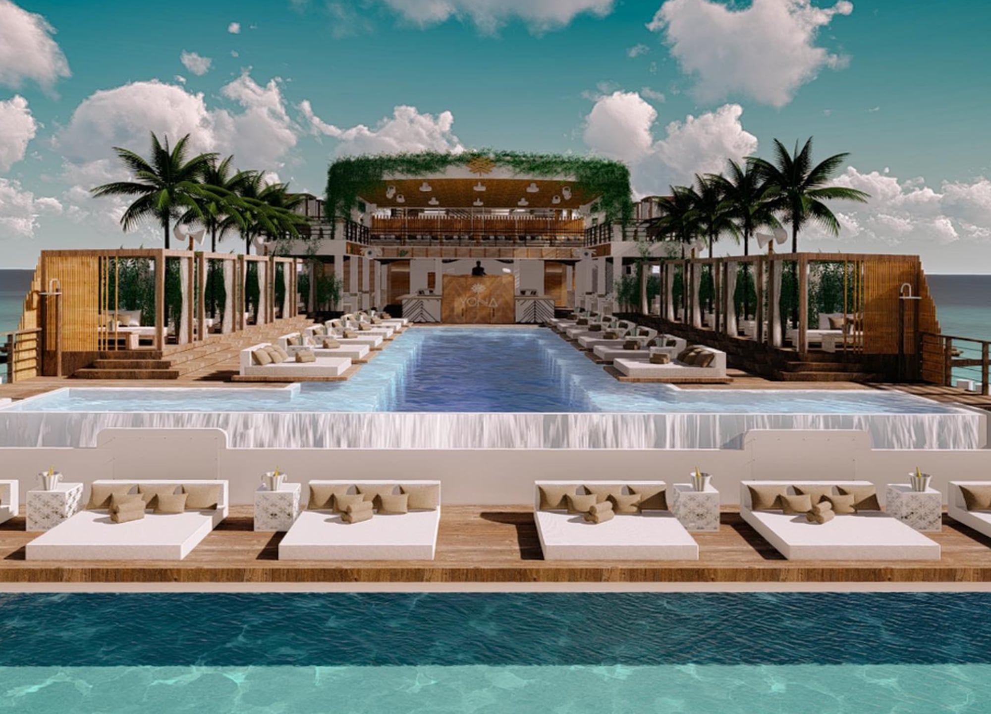 길이 22m의 인피니티 풀과 함께, 여럿이 함께 즐기기 좋은 다양한 카바나 좌석을 선택하실 수 있는 최첨단 플로팅 비치 클럽!! YONA 비치 클럽입니다.