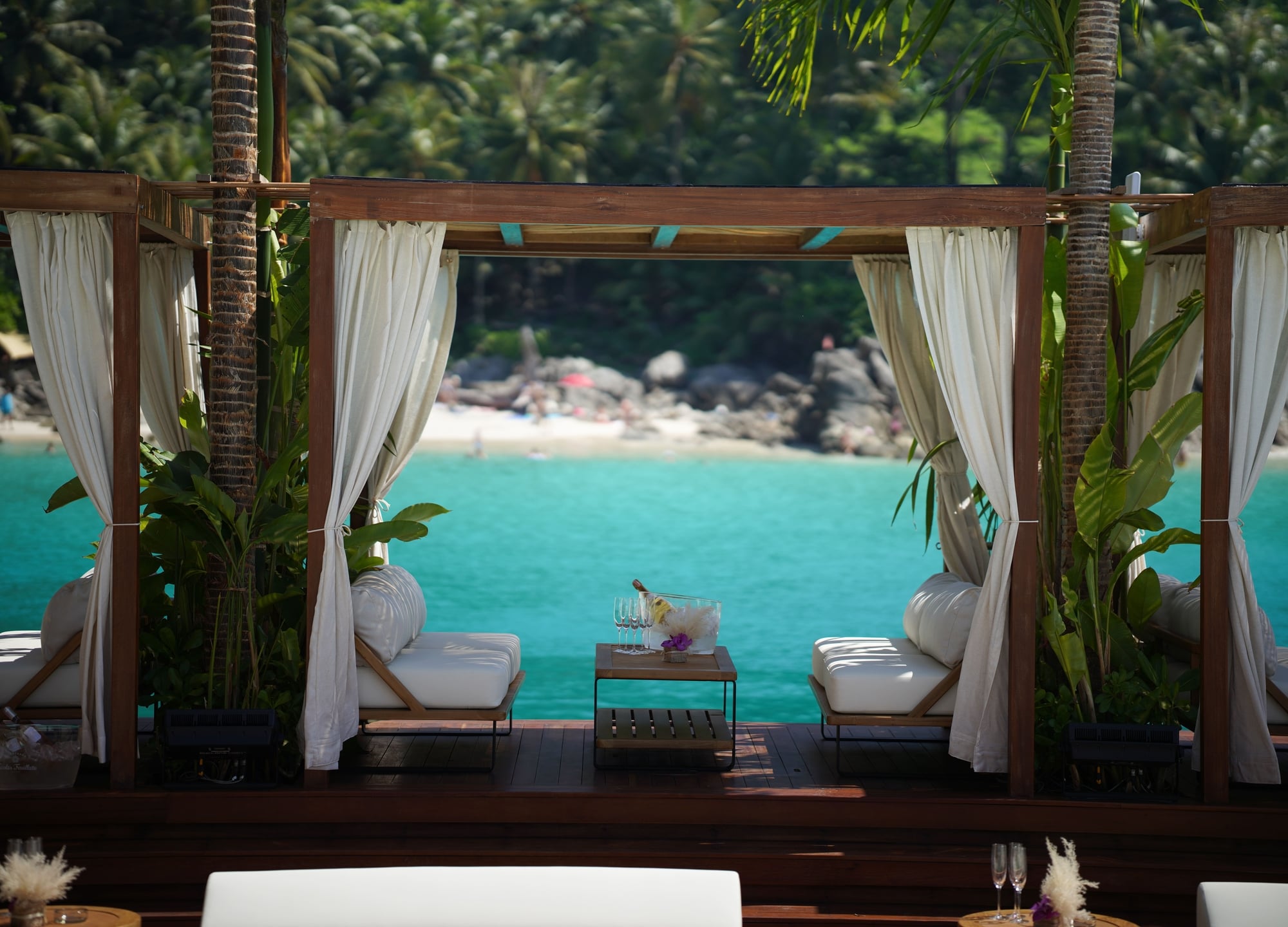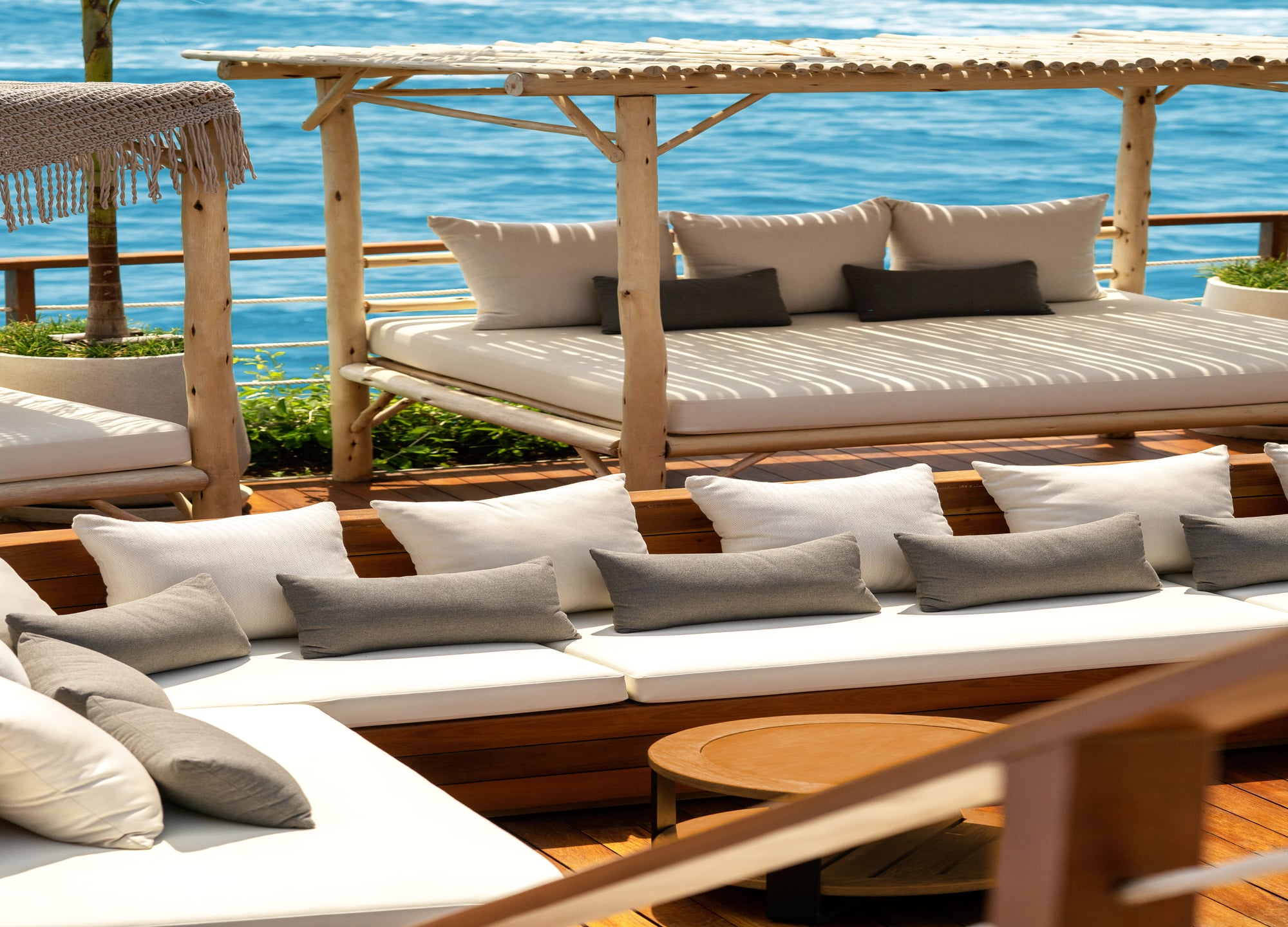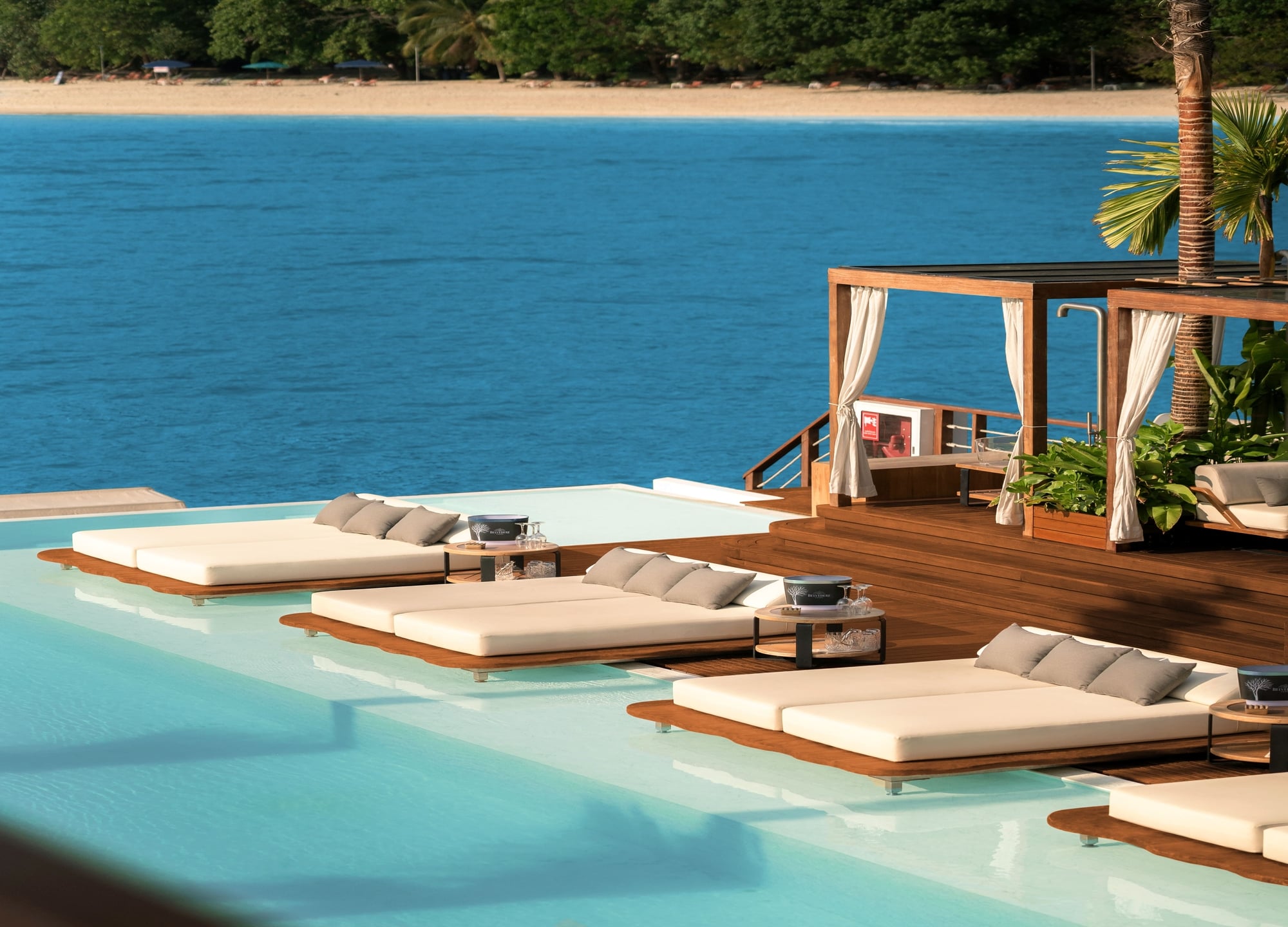 - 비치 클럽 구역과 선셋 테라스 2층에는 4~8인까지 이용 가능한 카바나 10개를 비롯해, 아늑한 풀 베드 12개, 바다 해먹 12개, 오션뷰 베드 4개가 마련되어 있습니다.
