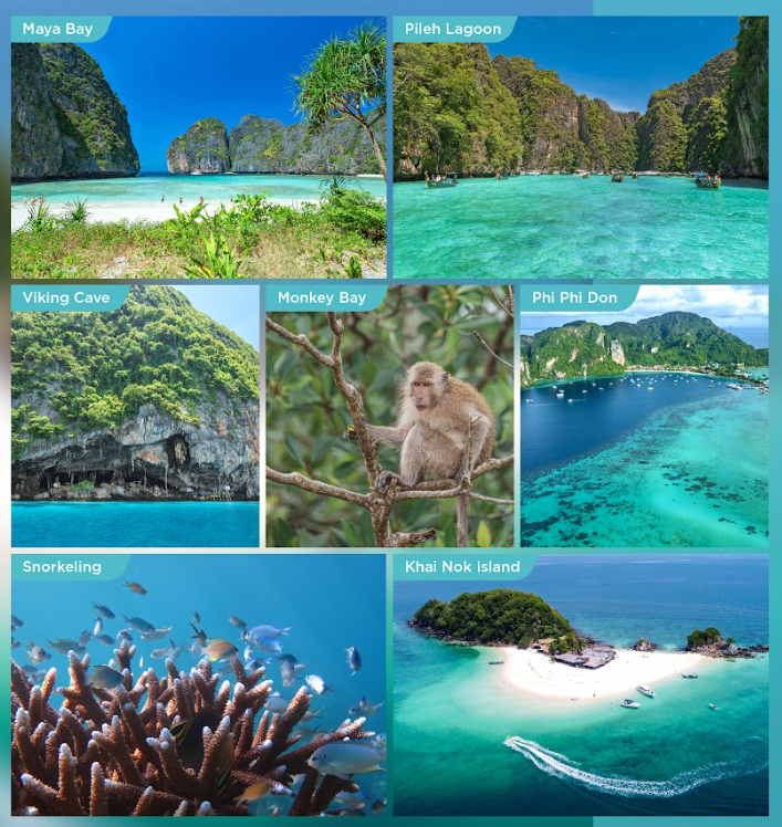 영화 The Beach의 배경인 마야 베이와 바이킹 동굴을 지나며 푸켓의 절경을 감상하고, 필레 라군의 청록빛 바다를 경험해 보세요. 몽키베이에서 원숭이를 관찰하고 피피돈에서 점심 식사 후, 뱀부섬에서 스노클링과 수영을 즐깁니다. 마지막으로 카이 누이 & 카이 녹 섬에서 휴식하며 하루를 마무리하는 알찬 일일 투어입니다. 🌊