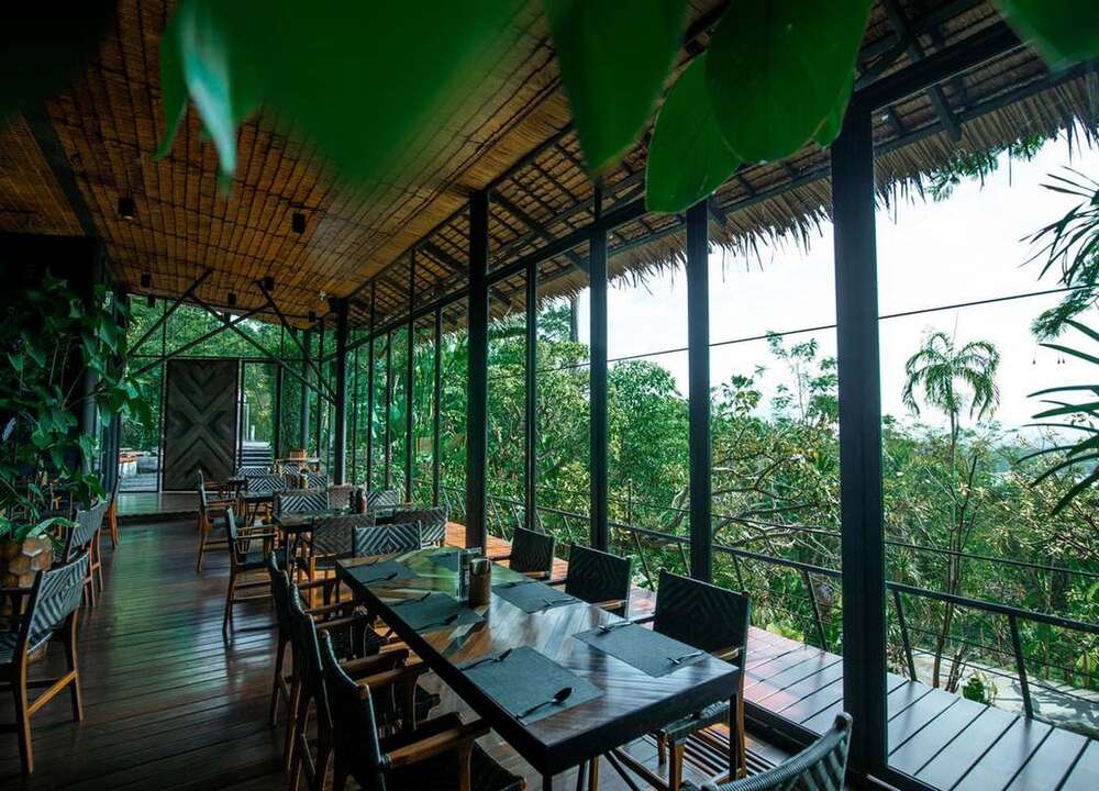 정글 속에 숨겨진 듯한 분위기의 자연 친화 레스토랑