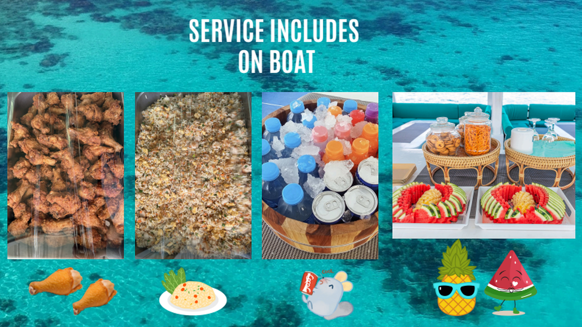 일반 스피드보트가 아닌 쾌적하고 안정적인 "고급형 카타마란 요트"에서 커피, 과일, 스낵, 아이스크림까지 여유롭게 즐겨 보세요! ☕🍉