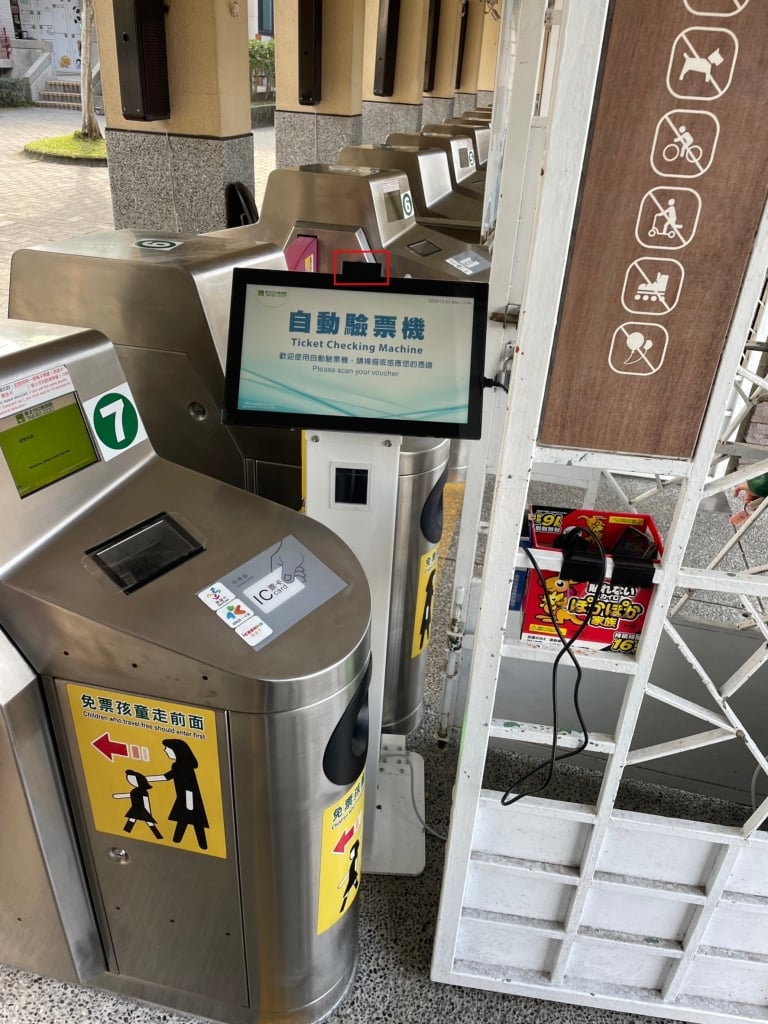 정문의 온라인 티켓 교환처의 자동 매표기에 QR Code를 스캔하여 종이 티켓으로 교환하시고 역에 들어가셔서 종이 티켓을 직원에게 제출 후 탑승하세요.