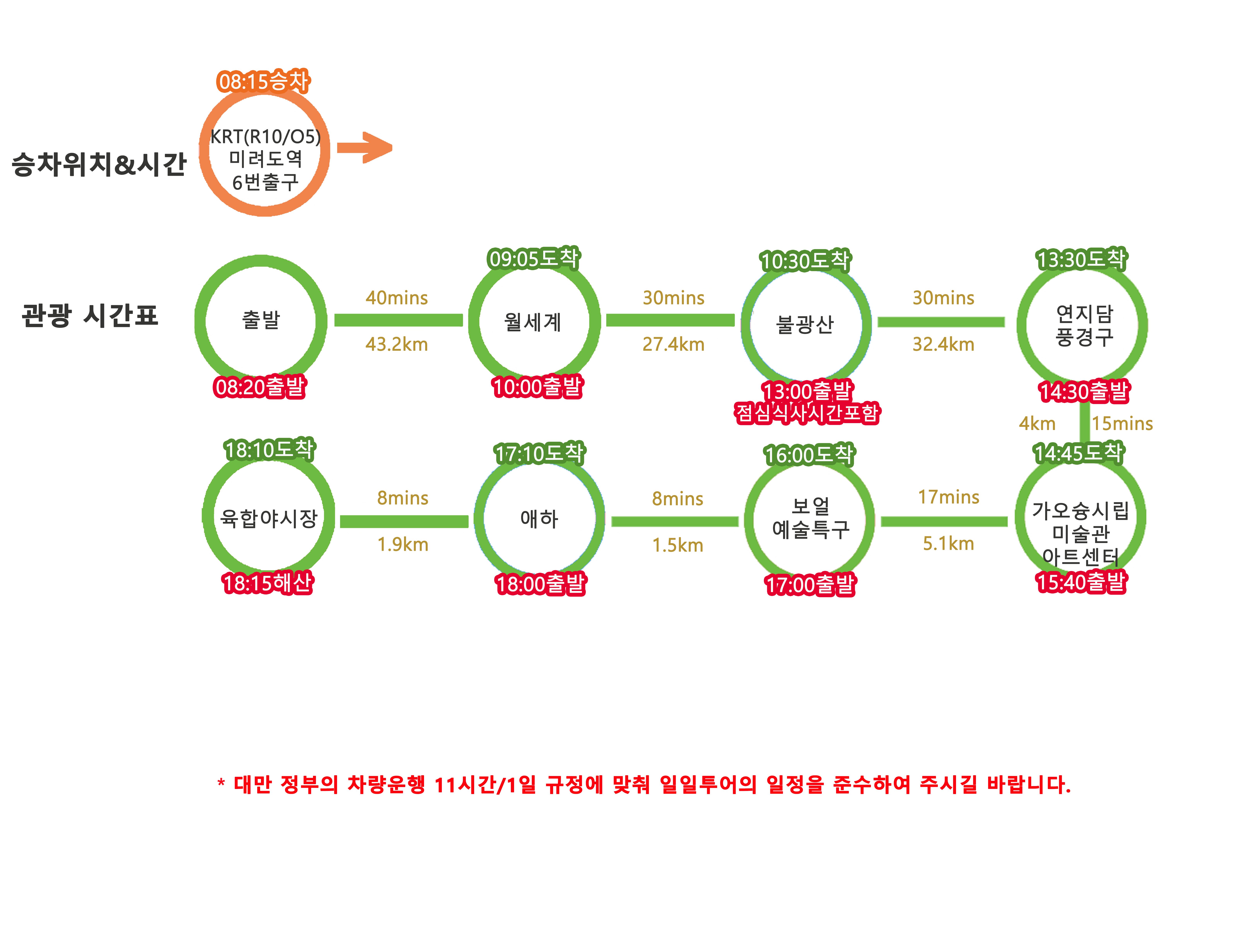 일정은 도로사정 또는 돌발상황 등으로 인해 다소 변경될 수 있음을 알려드립니다.