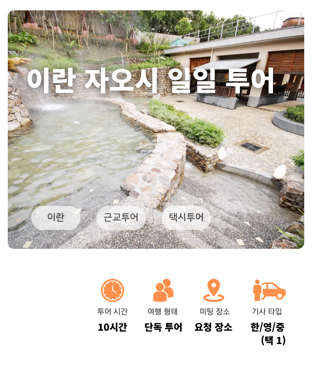 총 투어시간은 10시간으로(픽업부터 하차까지) 초과하게 될 경우, 0~30분당 300대만달러의 추가 비용이 발생합니다.