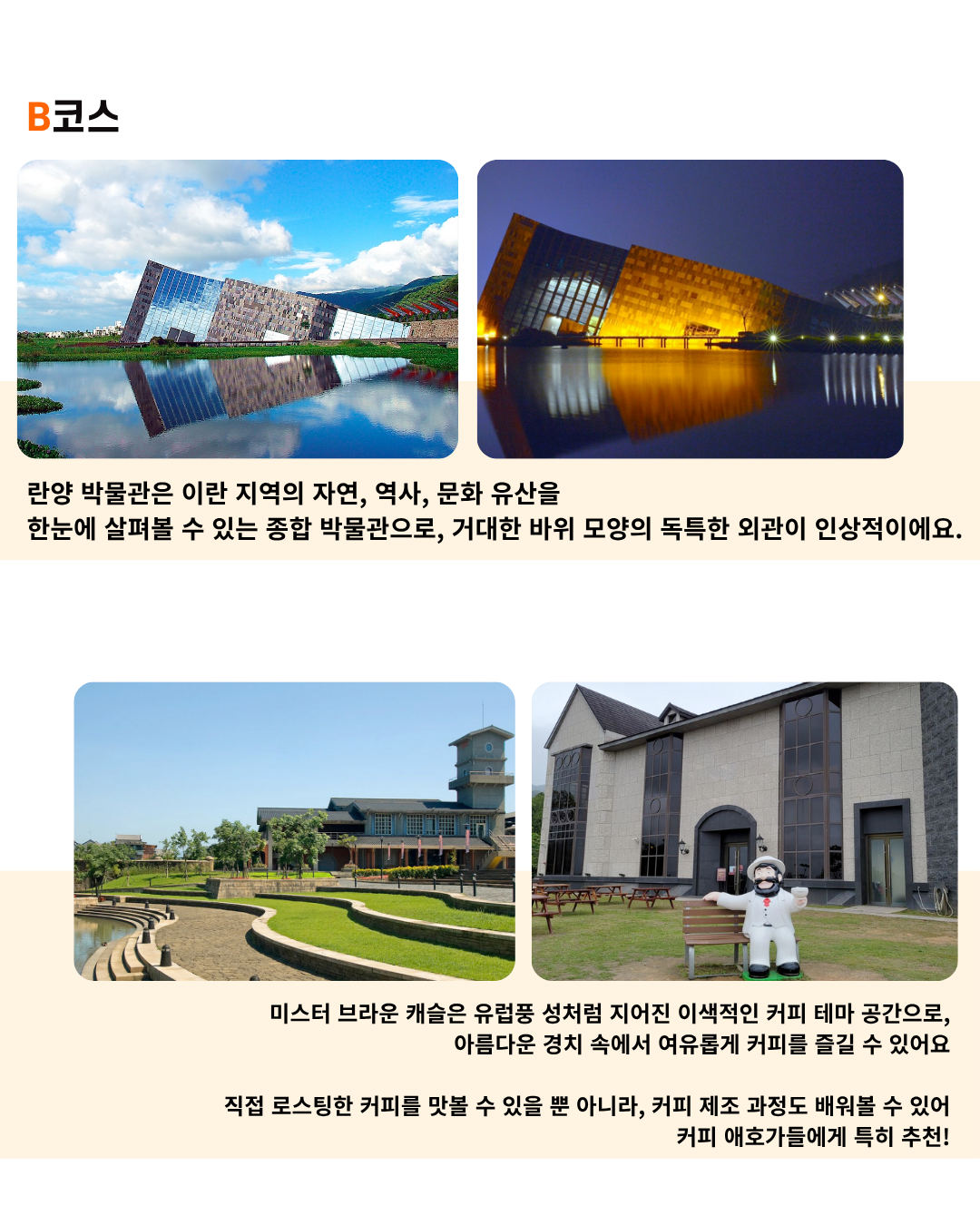 유럽풍 성처럼 지어진 이색적인 커피 테마 공간으로, 아름다운 경치 속에서 여유롭게 커피를 즐길 수 있어요