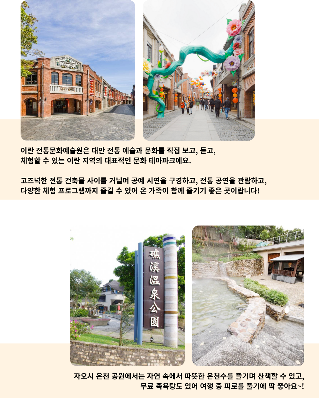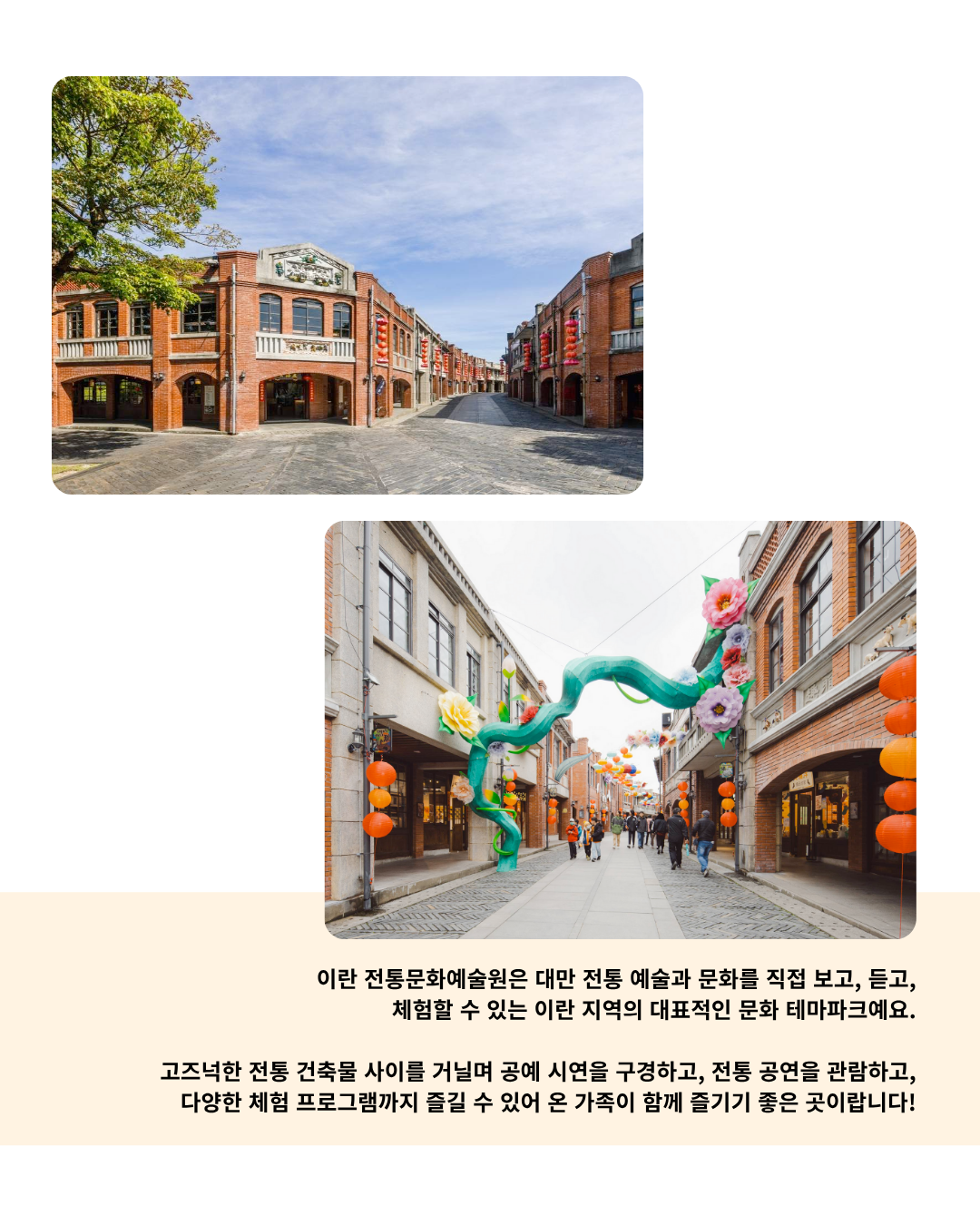 대만 전통 예술과 문화를 직접 보고, 듣고, 체험할 수 있는 이란 지역의 대표적인 문화 테마파크예요.