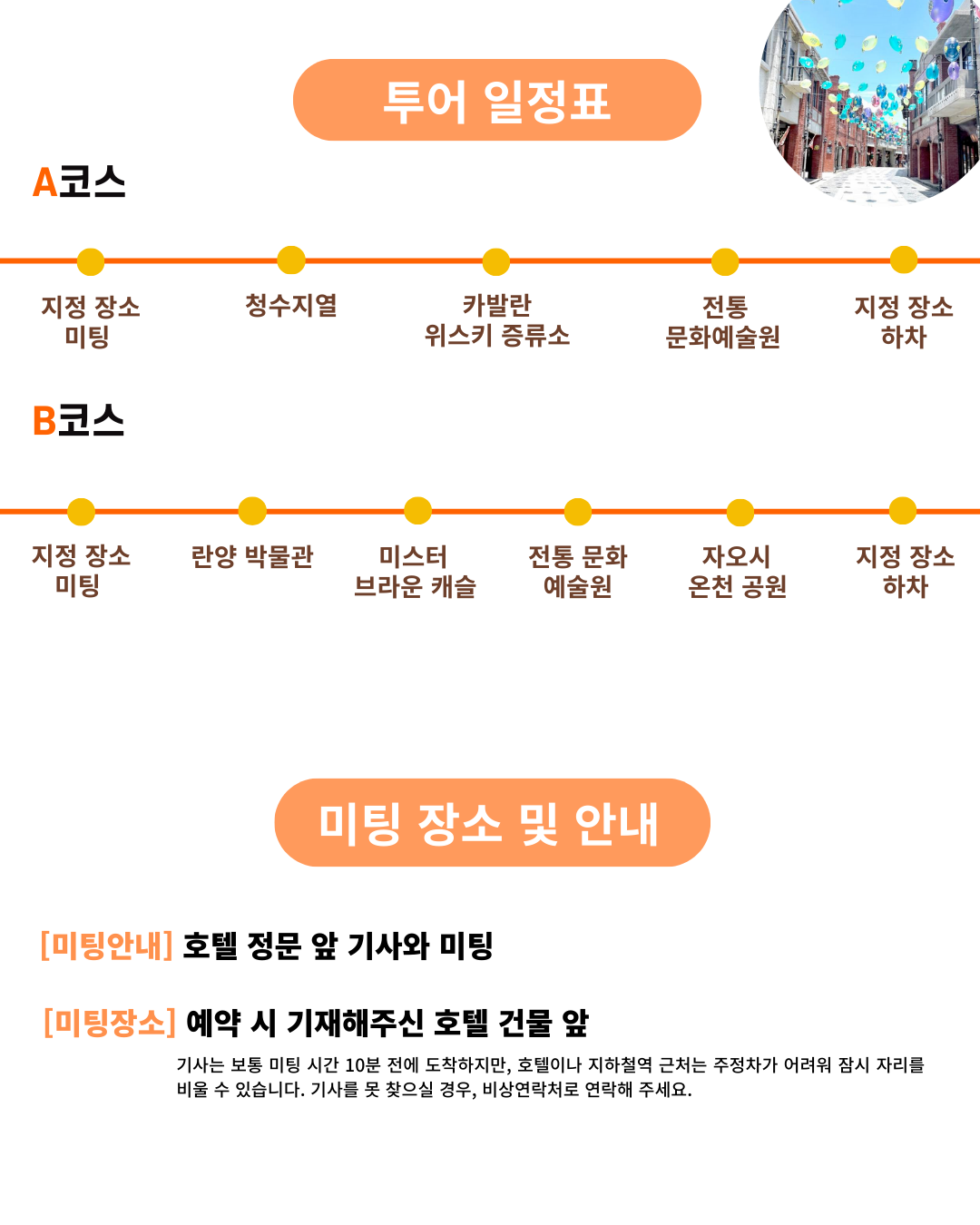 맞춤 택시투어 상품을 이용해주세요. - 픽업 장소에 따른 추가비용 안내