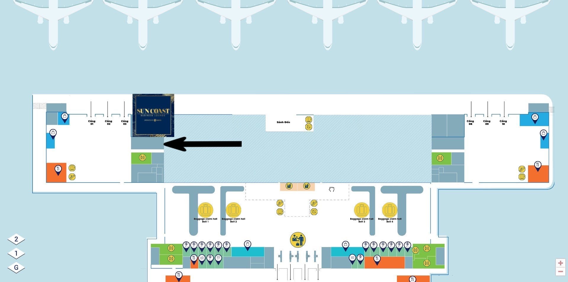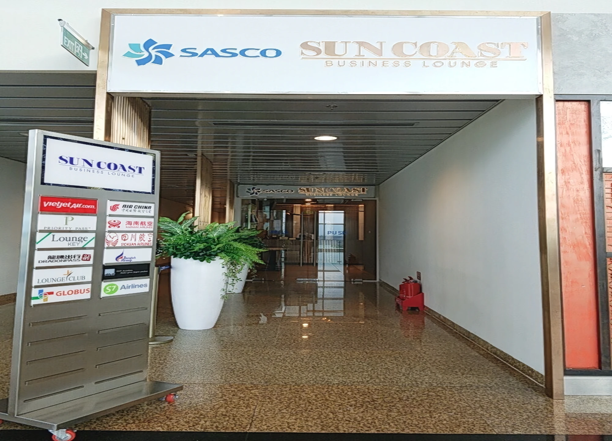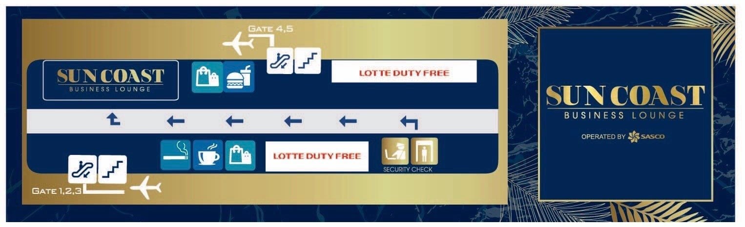 - - After passing immigration and baggage screening at Cam Ranh International Airport, if you go to the left, you will see the Suncoast Business Lounge sign.