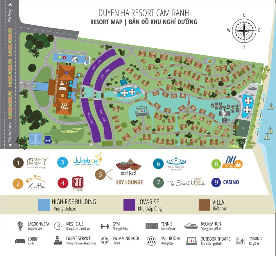 - 두옌하 리조트 깜란(Duyen Ha Resort Cam Ranh)은 2017년 오픈했으며 깜란비치(바이다이 비치)에 위치한 5성급 리조트입니다.