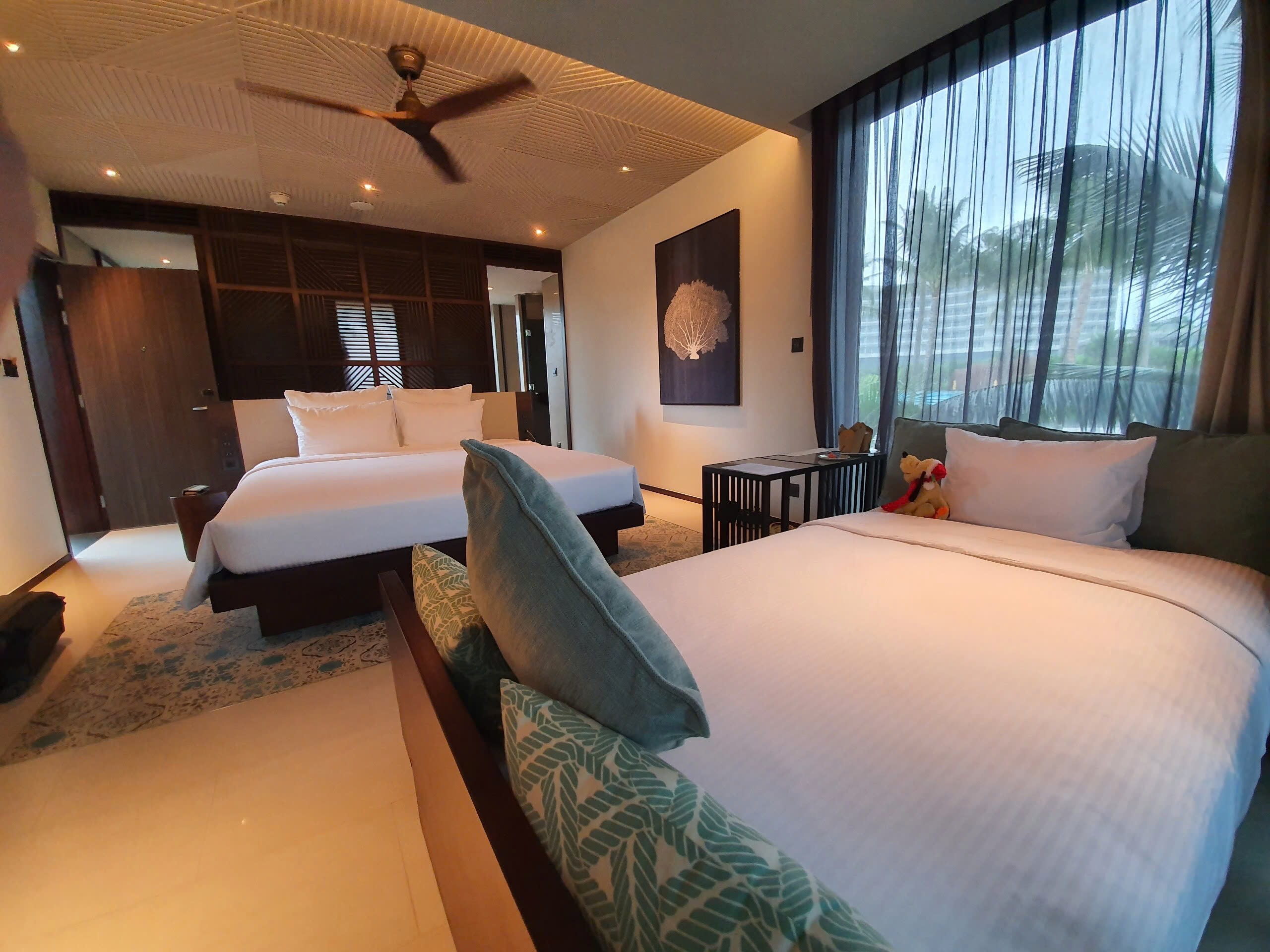 디럭스 가든 뷰 45㎡ 2~3층 더블 1 또는 싱글 2 욕조, 발코니 디럭스 오션 뷰 45㎡ 5~8층 바다뷰 발코니 프리미엄 디럭스 45㎡ 6~8층 바다뷰 욕조, 발코니 카바나 풀 액세스 57㎡ 1~2층 욕조, 발코니 프리미엄 패밀리 117㎡ 1~1층 싱글 2, 킹 1 욕조, 발코니 객실 특이사항트윈베드는 붙일 수 있습니다.