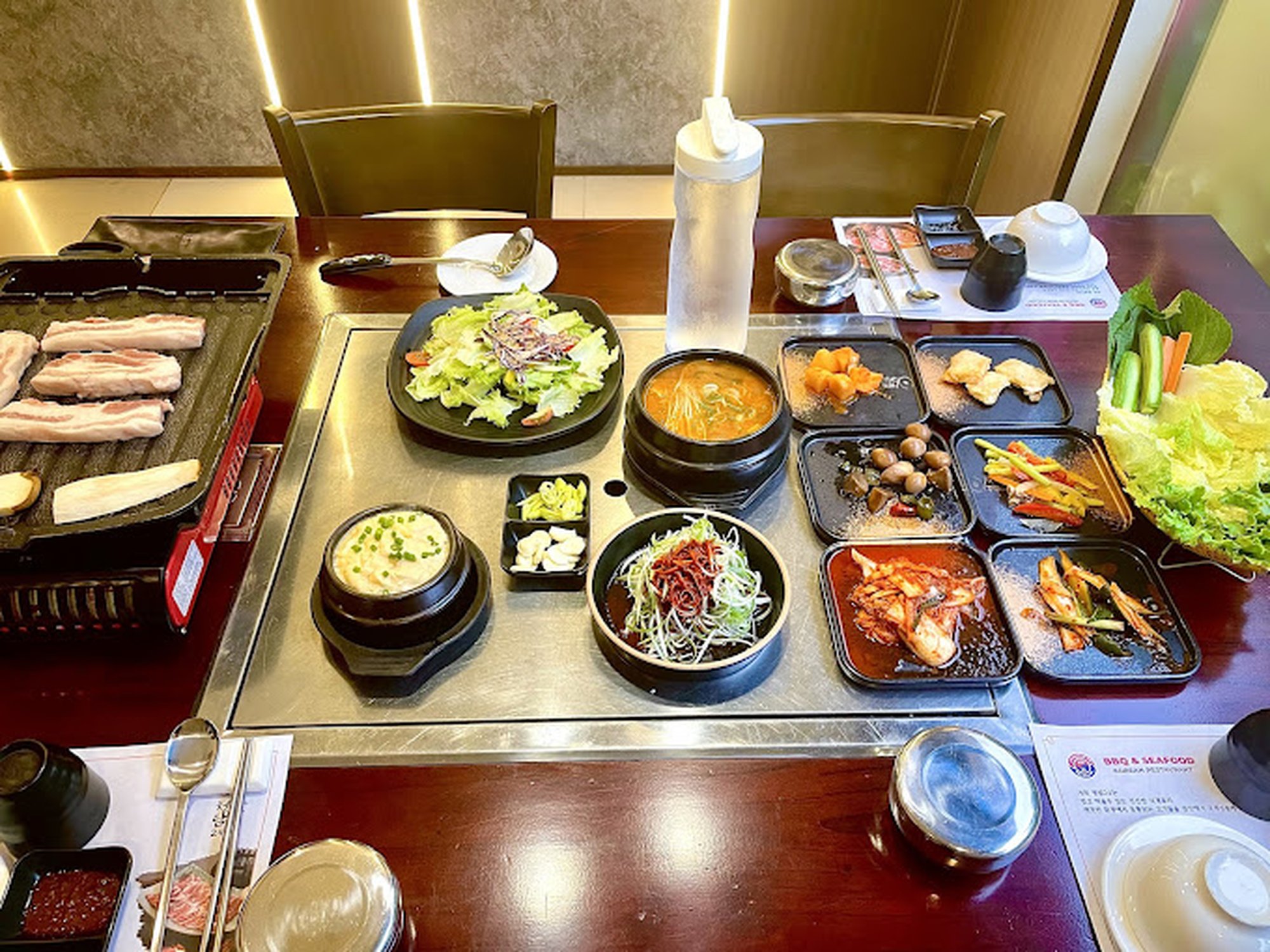 여러 한식을 판매하지만 삼겹살, 등갈비 김치찜이 맛있습니다.