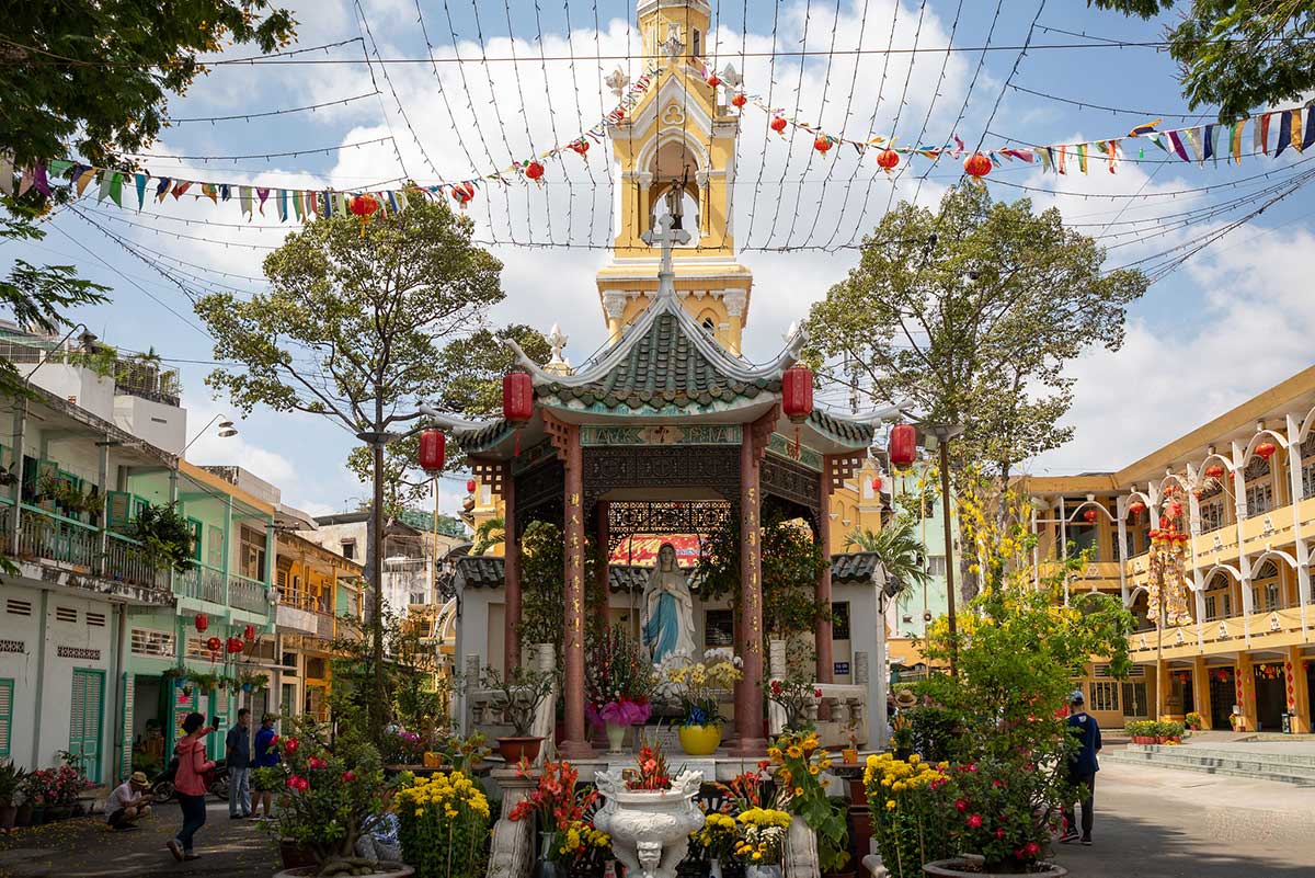 현지식 점심식사 이 후 오후 일정으로는 차이나타운에 위치한 초론 시장과 티엔하우 사원을 관광해보세요.