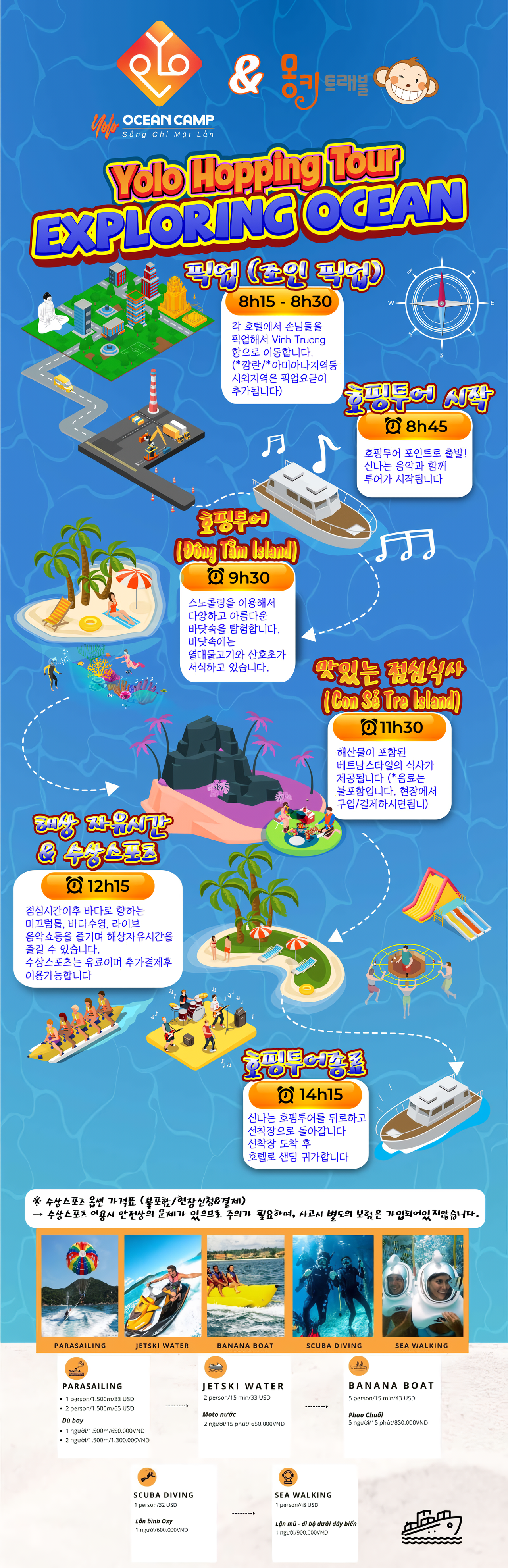 - 08:45 선착장에서 호핑투어포인트로 이동