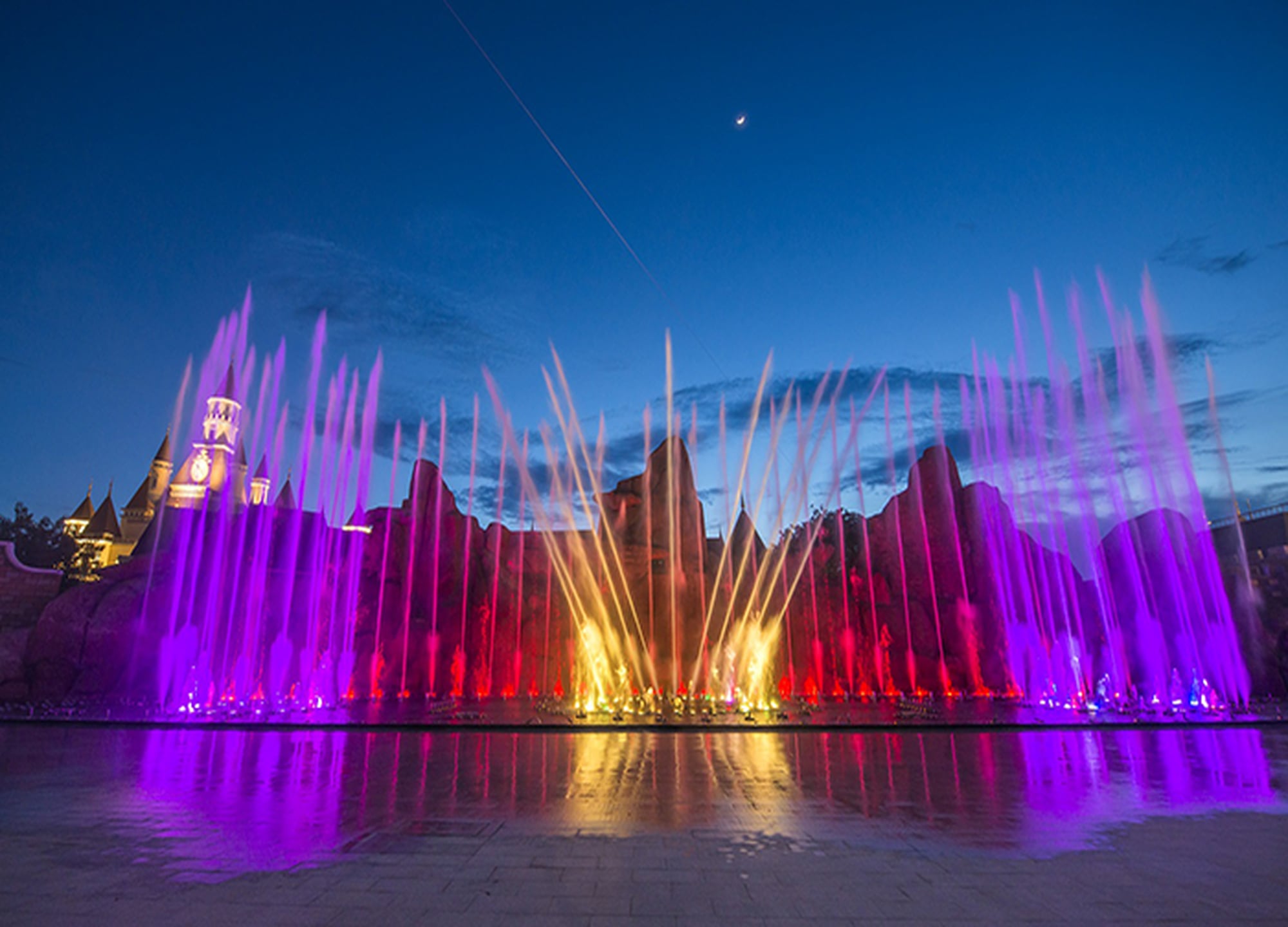 18:45 ~ 19:00 정도 펼쳐지는 감동적이고 경쾌한 워터 뮤직쇼를 경험해보세요.