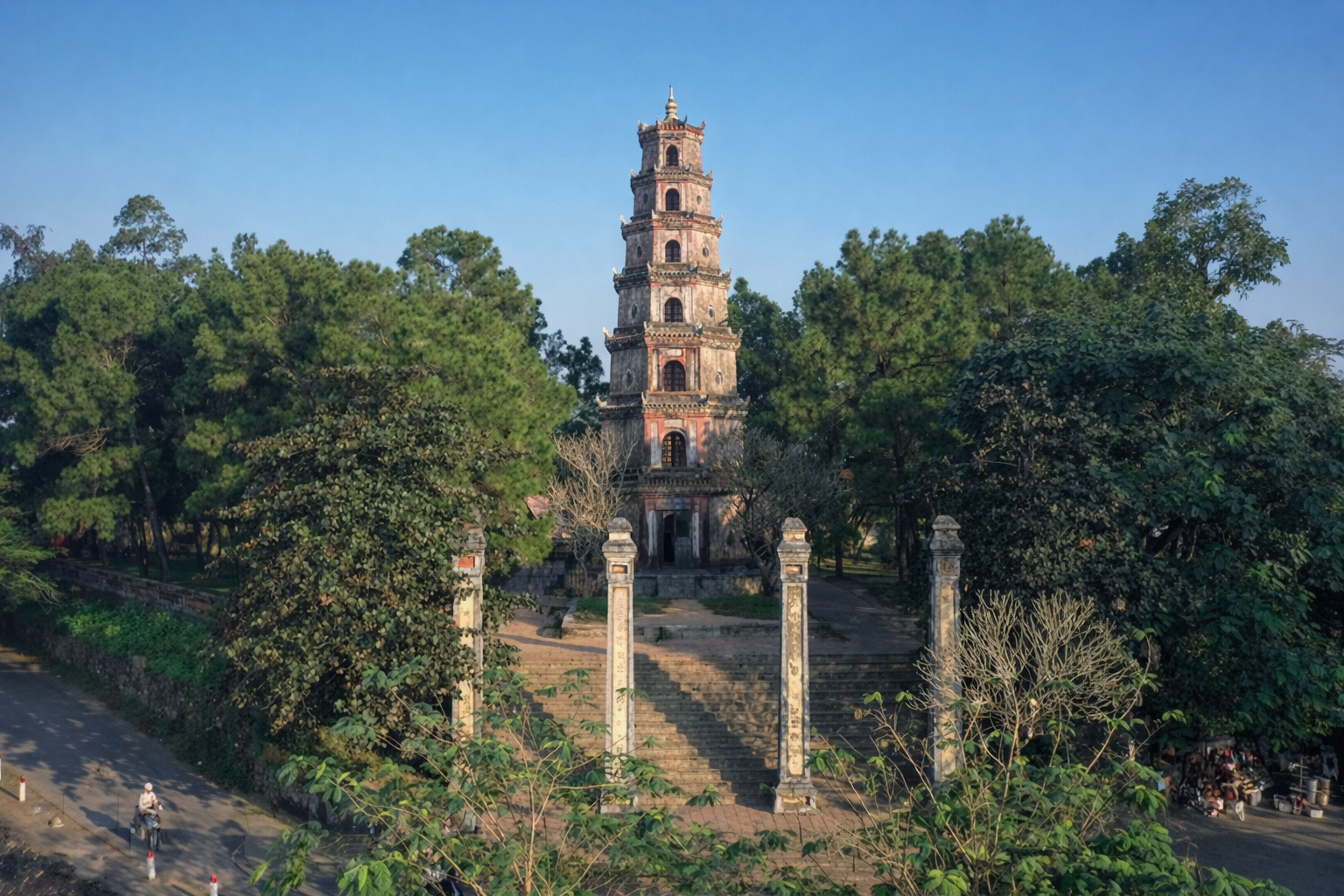 입구에는 19세기에 세워진 8각 7층 석탑이 있는데요, 높이가 21m가 넘는 이 탑은 후에(훼) 에서뿐만이 아니라,