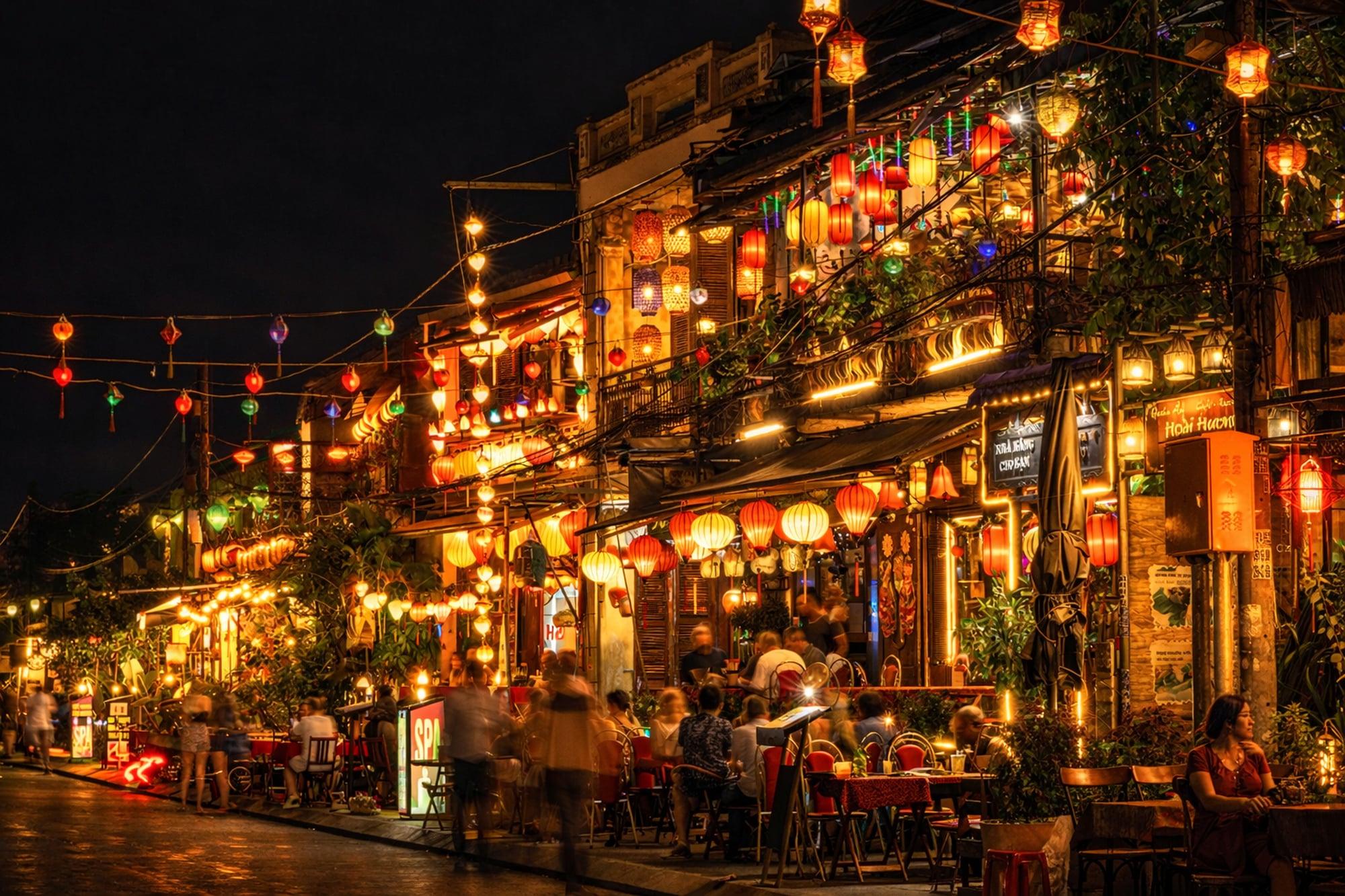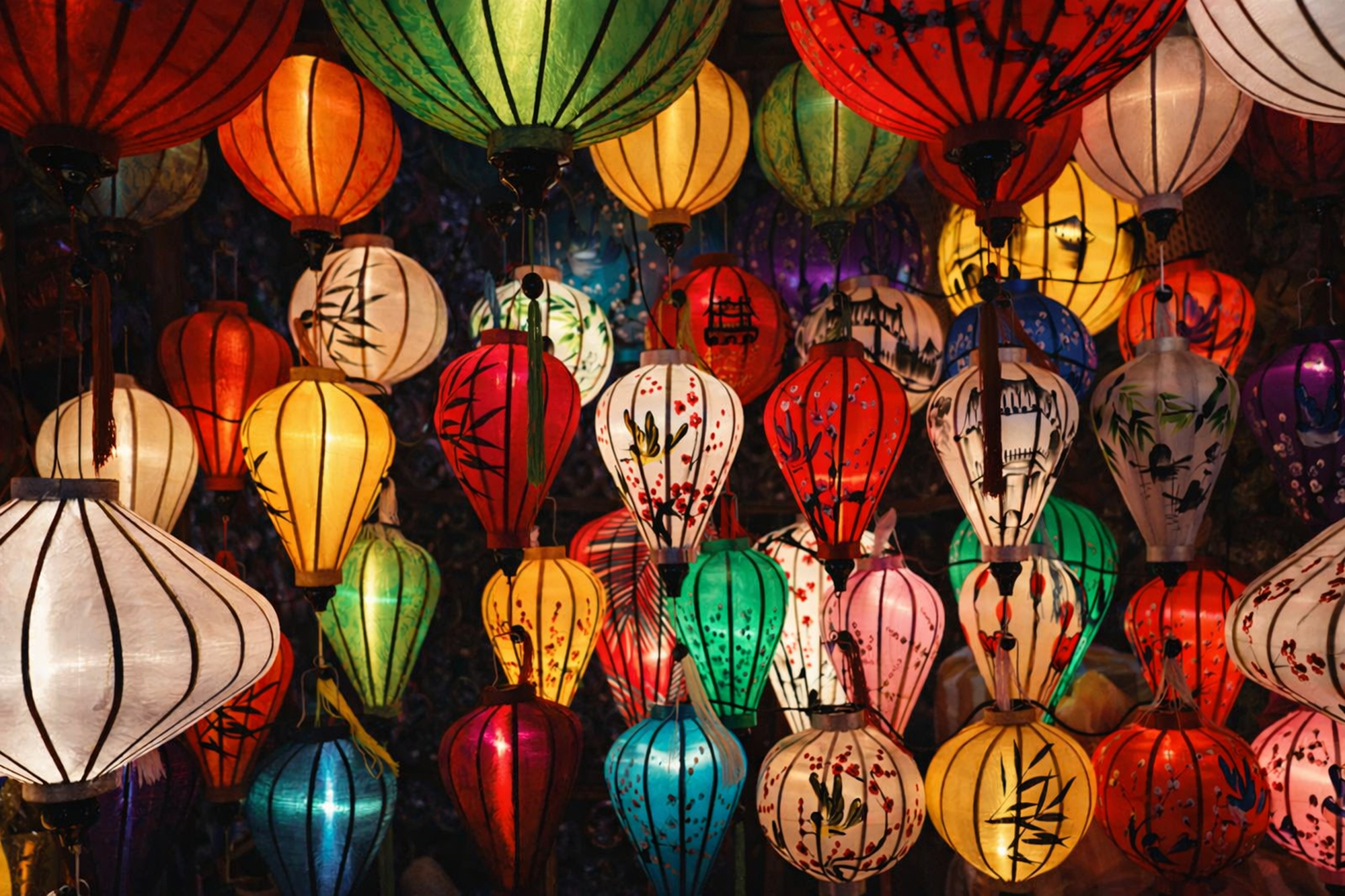 어둠이 깔리면서 하나둘 켜기는 형형색색의 전등이 호이안의 트레이드마크로 색다른 아름다움을 즐길 수 있습니다
