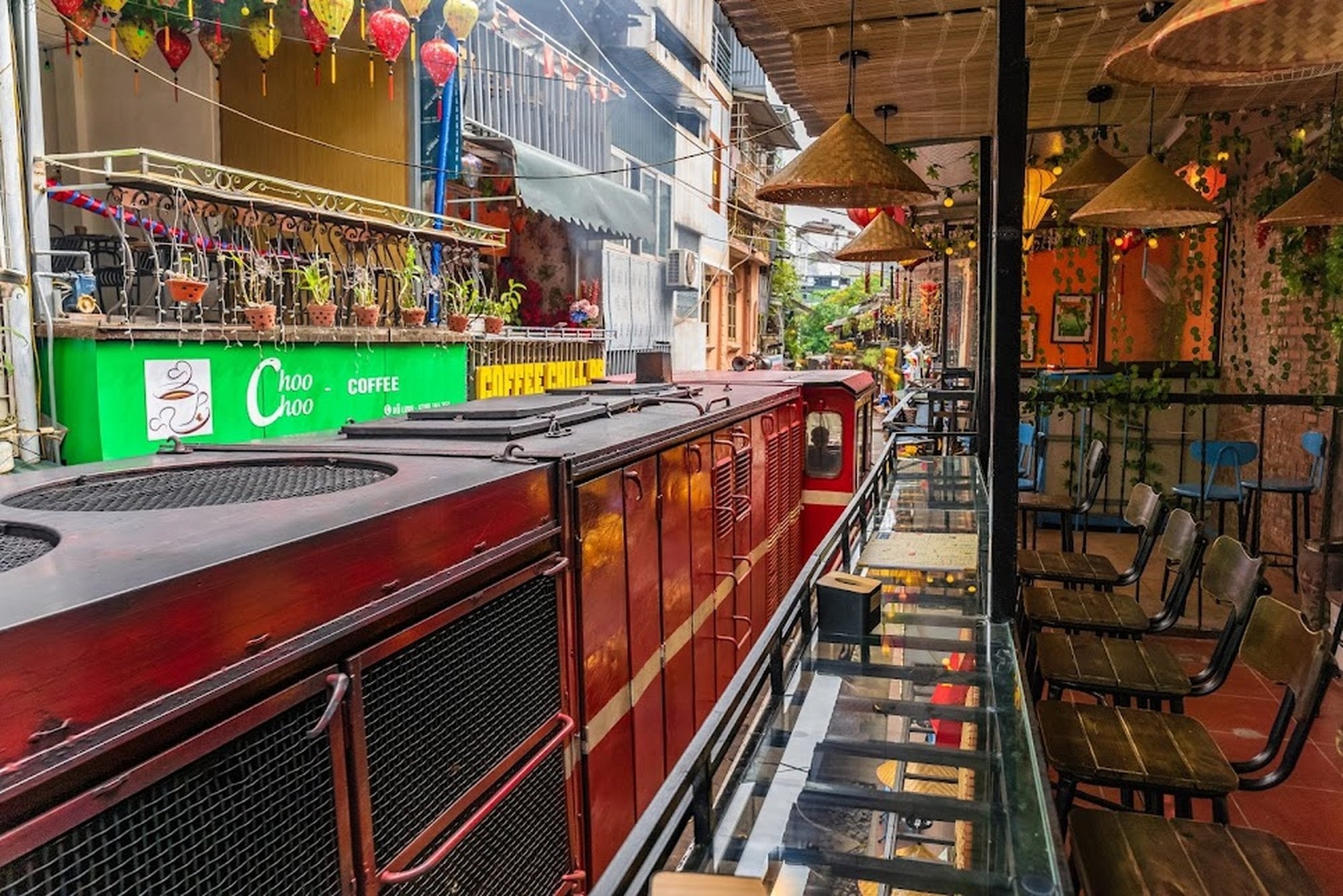 기차가 지나지 않는 시간에는 카페와 거리 풍경을 즐기며 색다른 하노이의 매력을 느낄 수 있습니다.