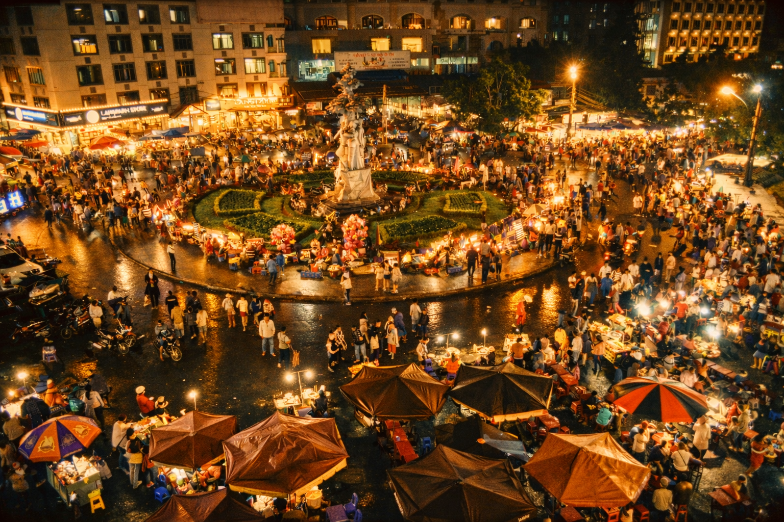 달랏 유명 관광지 달랏 야시장 각종 음식, 옷, 기념품 판매합니다.
