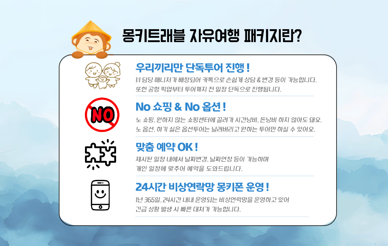 - 투어 시간과 순서는 원하시는 대로 조율할 수 있습니다.