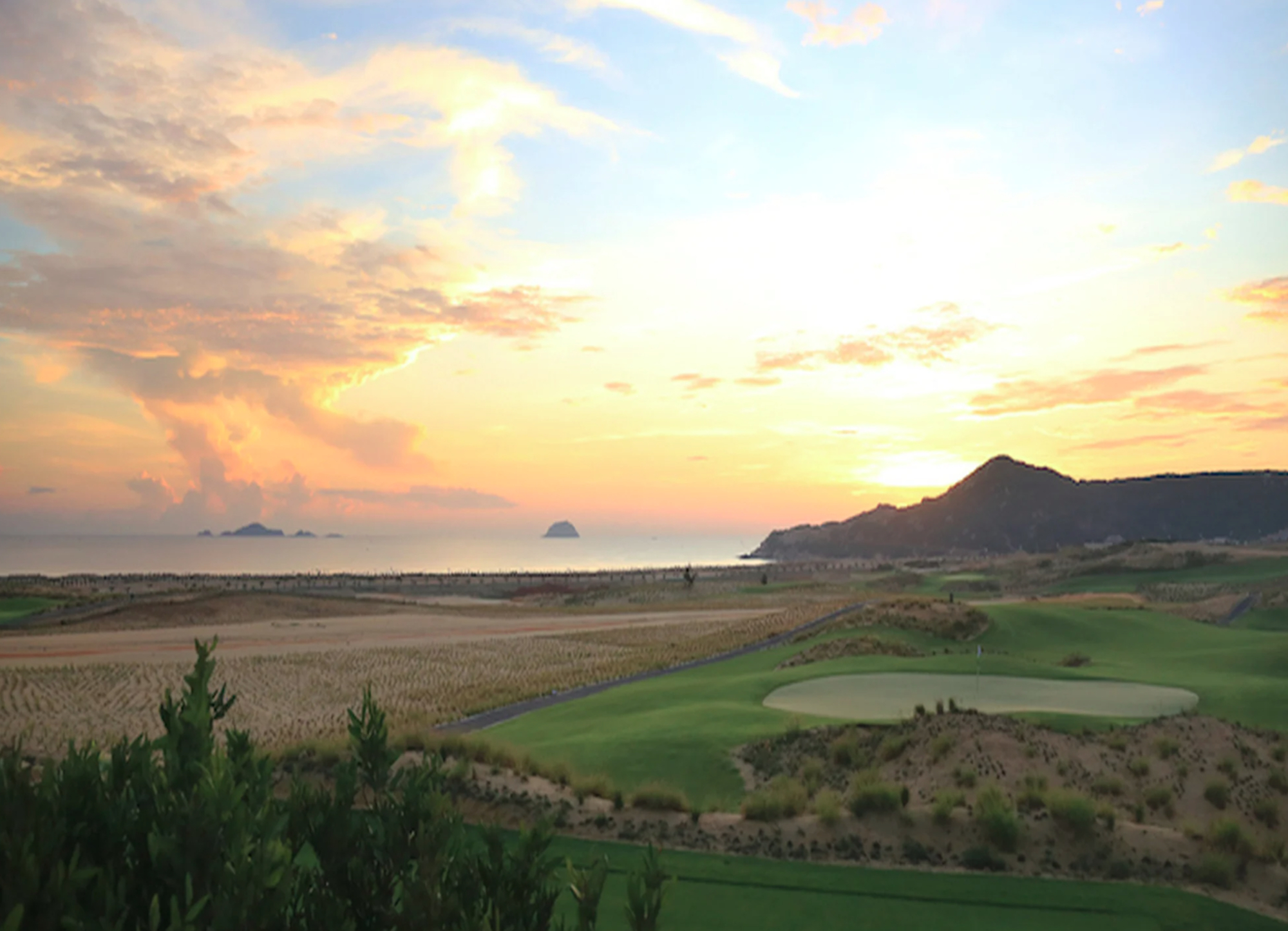 하얀 모래 벙커와 나트랑만의 경치, 산과 바다로 둘러싸인이 골프 코스는 진정한 골퍼의 천국이며 월드 클라스의 Driving Range 도 보유하고있습니다. - 확정 후 티오프 변경안내
